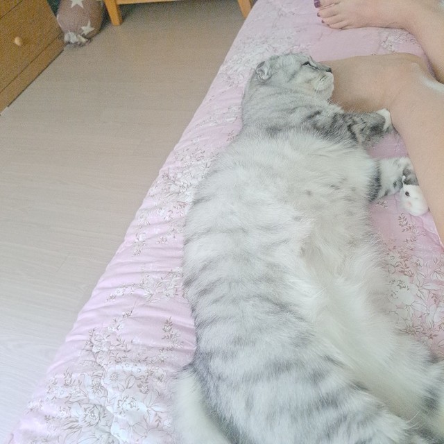 밥먹고 집사 졸졸 따라 다니다가제가 침대로 올라오니 따라 올라와 요러고잠들었네요😍셔터소리에 휙 돌아서앞발 모으고 아련하게~너무 귀여워요❤️
