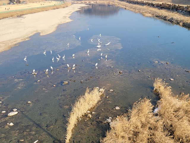 강물에서 노는 새들