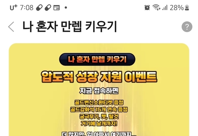 나혼자만렙키우기 앱 최초 접속하고 130캐시