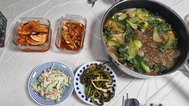 미션..업로드..소불고기전골 크래미와사비 샐러드
