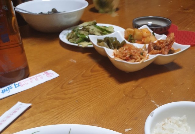 매콤한 오징어국과 생선