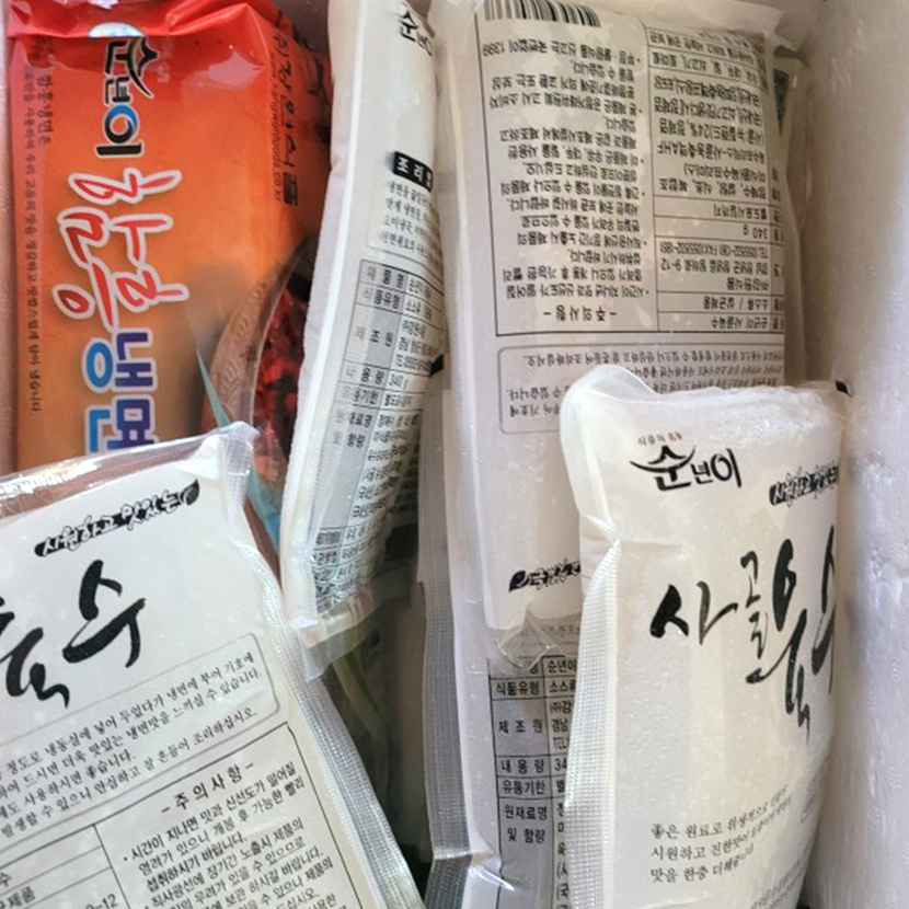 간편식 전문 쇼핑몰 밥심 마켓입니다. 밥심 마켓 유저분들의 리뷰를 올려드립니다!요즘 외식도 자제하고, 늘상 먹는 집밥은 쉽게 질리고… 집에서 티비보다 더 많이 보는 게 쇼핑이네요딸아이가 냉면~냉면~ 하도 노래를 불러서 사 본 함흥냉면 밀키트. 일반냉면집 가서 먹는 것보다 맛나고 면도 탱글하니 쫄깃해요. 시어머니께 맛보시라고 갖다드리니 또 달라고 하셔서 또 사서 먹고 있는 중.제품정보에는 사골함량이 높다고 했는데 고기 육수라기보단 좀 달고 새콤한 맛이 나요. 엄청 자극적인 맛은 아니구요. 시중에 파는 풀무x동치미냉면 이런것보단 아무래도 신맛은 덜한 맛이랄까?주문하면 아이스박스에 가득가득 시원하게 실려옵니다:) 저희집은 물냉,비냉 다 먹고 싶은데 반반은 안 팔아서 두세트 다 시켰어요.함흥물냉세트 (냉면10개+냉사골육수10개+양념장10개) 19,000원 1인분씩 소분되어 있어서 먹을만큼 꺼내먹기 참 좋아요.가격이 워낙 저렴해서 샀는데 나름 괜찮은 거 같아요. 다만 공장에서 만들어 나오는지라 함흥치고는 면 굵기가 좀 있더라고요. 가느다란 얇은 면발 원하시는 분들은 참고하시구요.종류는 비냉이랑 물냉 있구요. 갠적으로 비빔은 비빔냉면장을 추가로 구입하는 걸 추천드립니다. 남편은 물냉이랑 다른 매콤한 비빔장 맛으로 먹으려 했는데 기본 적량만 넣으면 약간 심심하대요. 저는 그럭저럭 괜찮은편이었는데..면은 끓는 물에 1분 정도만 살짝 삶아주면 충분해요. 탱글탱글하니 쫄깃한 면발에 육수부어주는데, 살짝 살얼음이 있는 상태에서 부어주면 비주얼도 훌륭하고 목구멍에 면과 국물이 꿀떡꿀떡 넘어갈 때 그 시원함이란 이루 말로 표현할 수 없네요.기본으로 김치 올려먹고 만두도 두어개 올려주면 아주 맛나요. 새콤달콤해서 감칠맛나는데 양도 넉넉~ 참기름 살짝 넣어주면 육수 맛이 훨씬 더 맛있습니다.양념장 넣지 않고 육수만 부어줬을 때 모습인데 육수마저도 넉넉하죠~양념장을 함께 넣어주셔서 빼고 먹거나, 넣어 먹어도 되서 좋은 것 같아요. 그냥 먹긴 좀 심심한 감이 있어서 오이랑 계란넣으면 밖에서 파는 듯한 비주얼이 집에서 5분만에 한그릇 딱 차려져요.