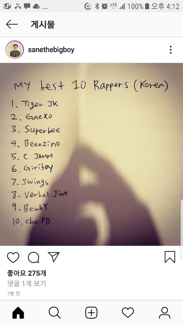 산이가 뽑은 래퍼 탑텐