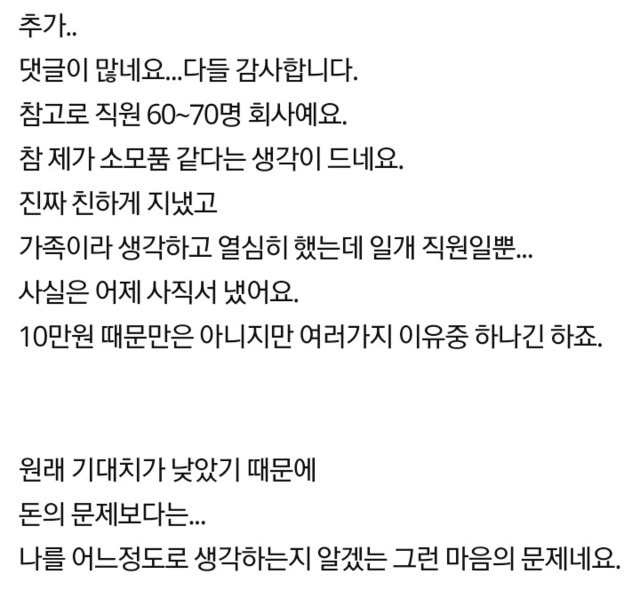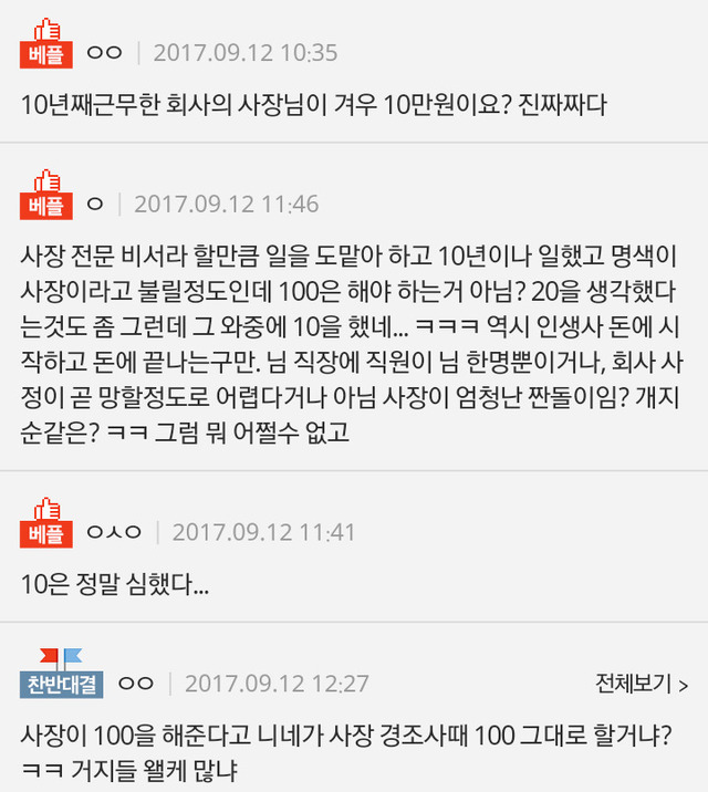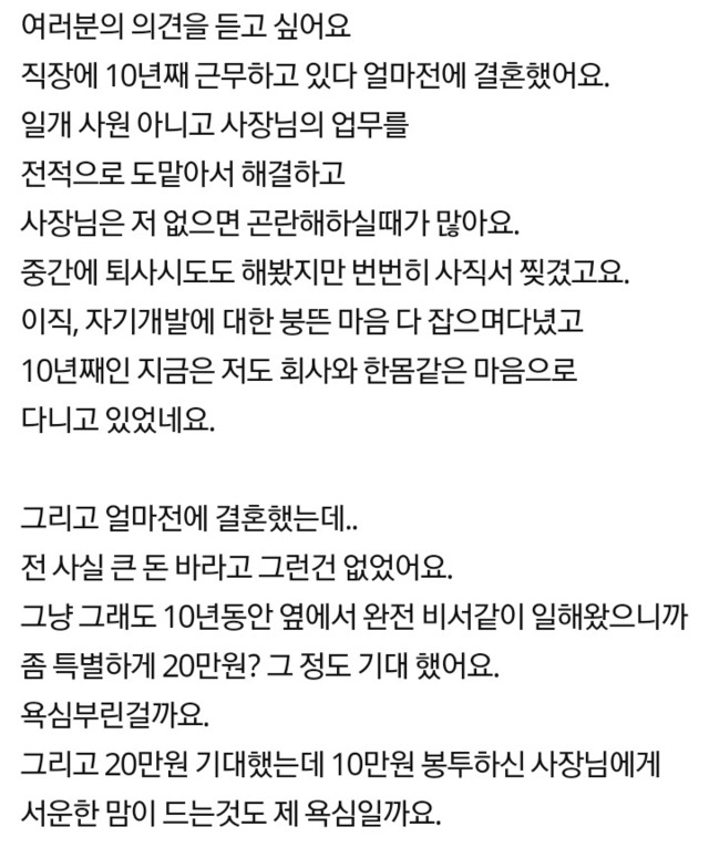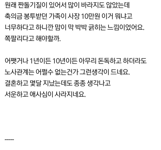 10년다닌 회사 사장님의 축의금이 서운합니다...