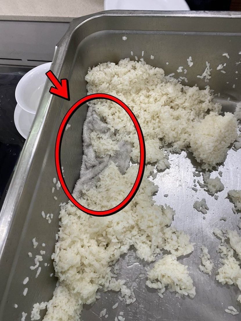 위키트리단체 이용객들이 먹은 밥통(대용량 스테인리스 바트) 안에서 수건이 나왔다.