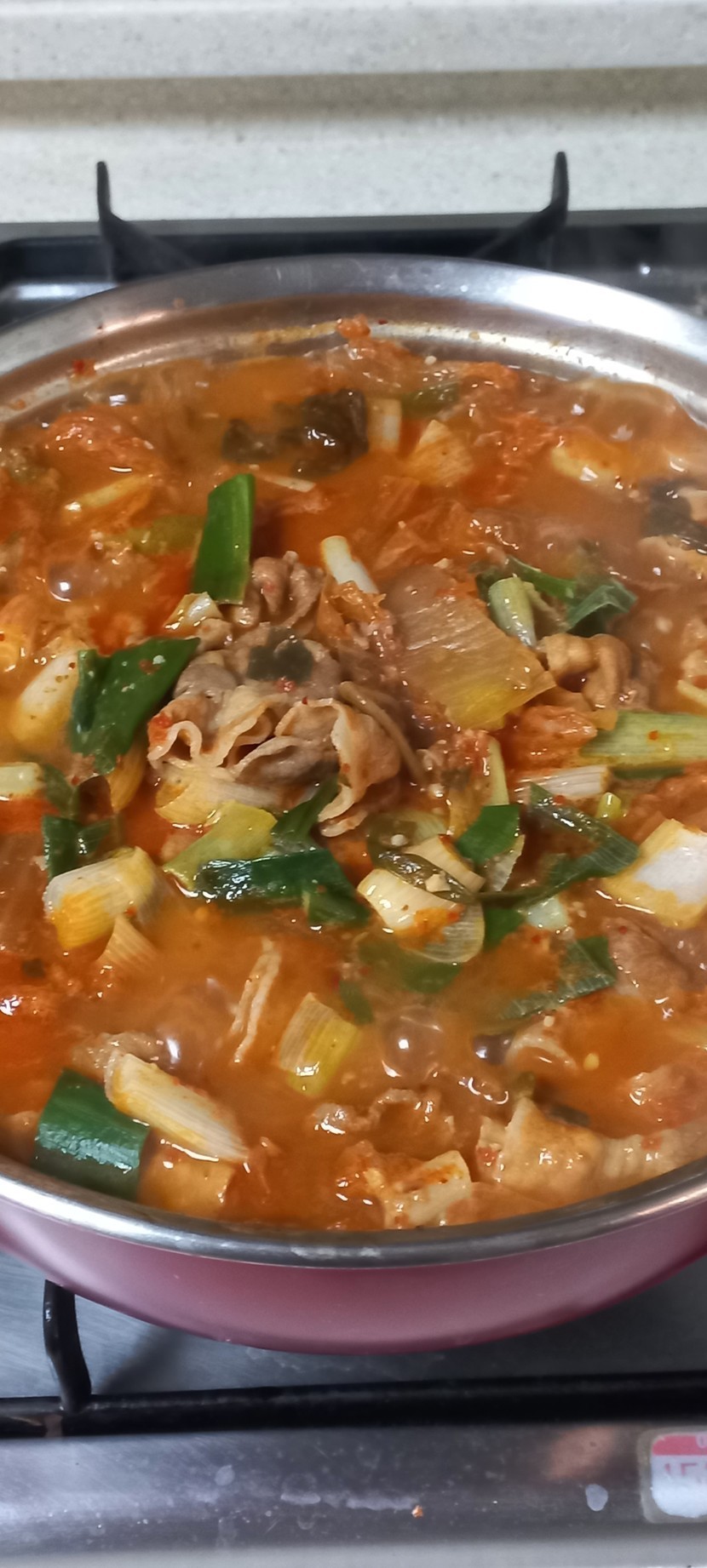 묵은지돼지고기넣고김치찌개끓여요