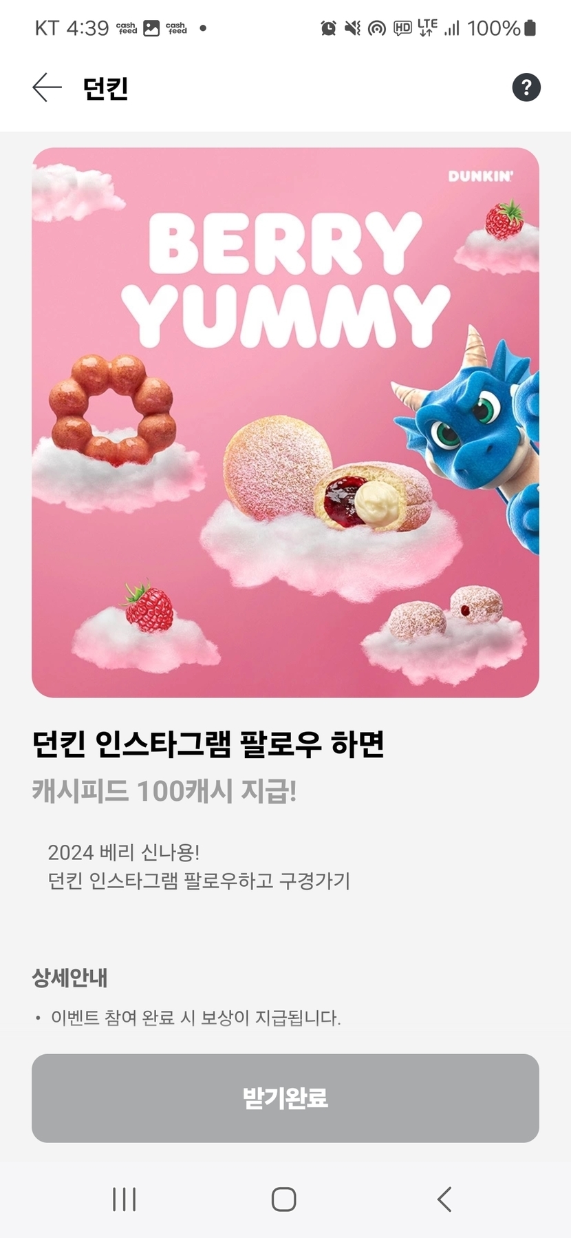 100캐시 적립받으세요