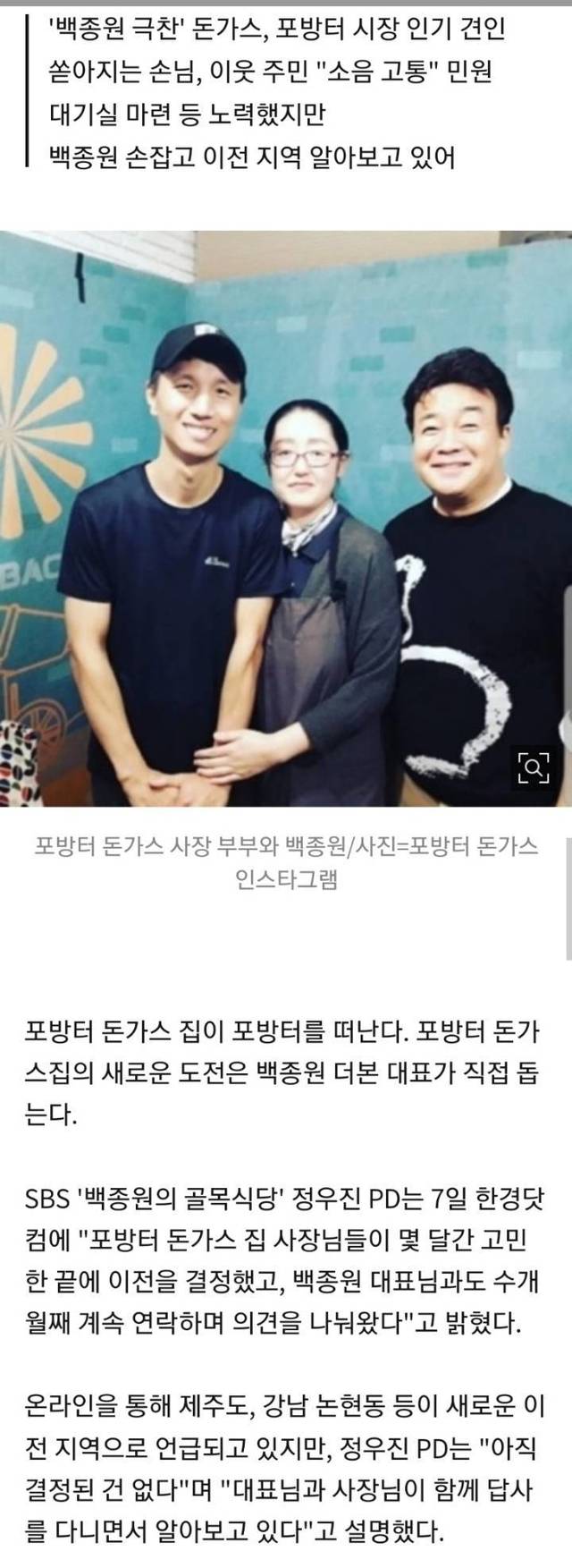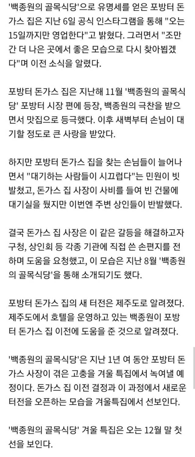 포방터 돈까스 이전, 백종원이 직접 돕는다…후보지 답사 중