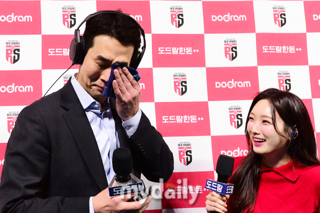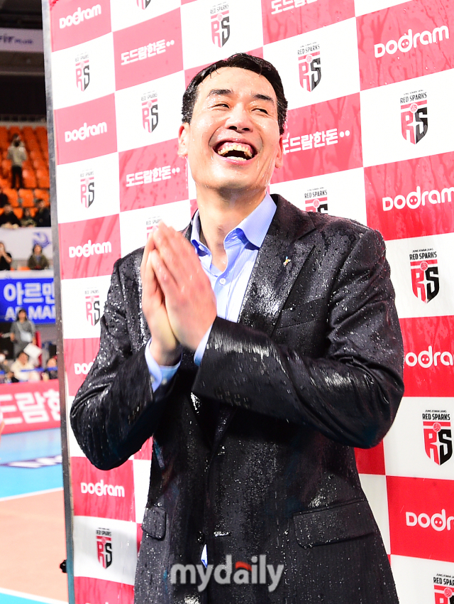 "나 우는거 아니야" 감독으로 첫 물벼락 고희진 감독…오늘은 마음껏 뿌려라! [곽경훈의 현장]