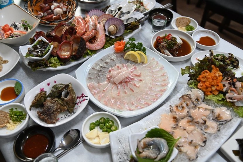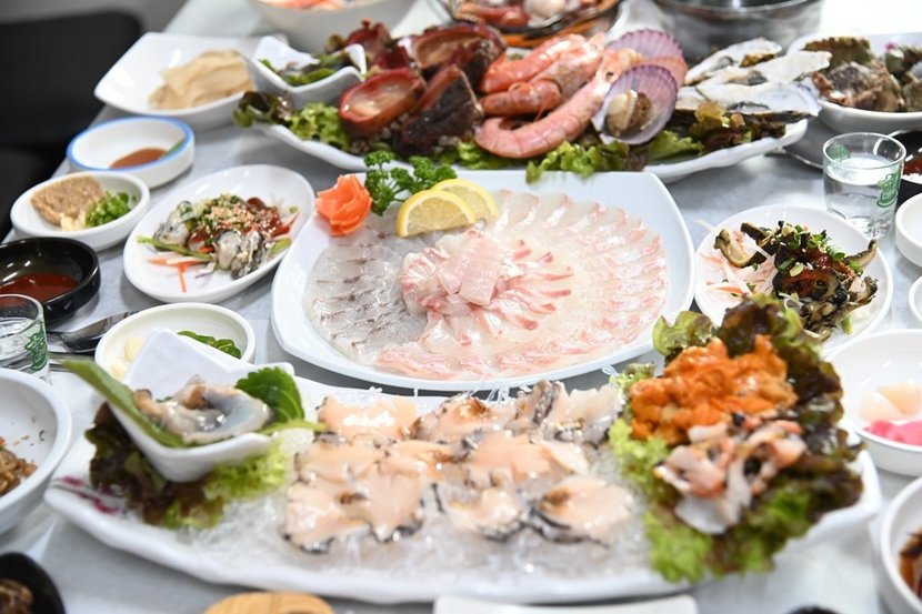거제 맛집 마성의 참맛 거제 맛집남해의 그림 거제는 꿈에도 가보고 싶은 곳이랍니다. 언젠가 친구가 버킷리스트로 거제살이 한달을 하면서 사진을 찍어보내 준 적이 있는데 필이 충만한 노을지는 거제의 매미성이었어요. 그 사진을 보고 어찌나 황홀하고 아름다운지 꼭 가야겠다는 다짐을 했죠. 그 결심을 행동으로 옮기기 위해 개나리봇짐을 싸고 봄바람을 맞으며 거제로 향했어요. 거제에 도착하자마자 느낀 감정은 자연이 무척이나 아름답고 특히 바다가 얄미울 정도로 매혹적이라는 점이에요. 그야말로 쪽빛바다가 내눈앞 펼쳐져 몸들 바를 모르겠어요. 실컷 바닷바람과 바다내음을 맡으며 며칠만이라도 진정한 거제 사랑꾼이 되기로 했어요.거제 두 번째날 이른 아침부터 지세포 해안을 산책했어요. 지세포 해양공원을 거쳐 지세포 해안 산책로를 둘러봤어요. 반짝이는 바다와 푸른 하늘이 평행을 이루며 한 폭의 그림을 만들어내고 있어요. 참 아름답다! 연신 감탄과 감동으로 빠져 있을 무렵 친구의 연락을 받고 조인하기로 했어요. 거제 입성을 기념으로 근사한 점심을 산다고 하네요. 로컬푸드라며 연신 자랑을 했던 그곳으로 가기로 했어요. 일단 데리러 오기를 기다리며 주변 풍경 촬영에 매진하고 있었죠. 친구와 함께 간 곳은 꽤 소문난 거제 맛집 강성횟집이었어요. 점심 별미 해산물을 맛볼 수 있는 핫한 횟집이라고 하더라고요. 예전에 서민갑부와 꾼의 정석 외 생방송 오늘저녁, 생생정보, 찾아라맛있는 TV 등 다양한 방송에 나온 맛집이었어요.현지인에게 더 유명한 거제 맛집 1등 횟집이라는 수식어가 늘 따라다니는 맛집이에요. 특히 해녀 사장님이 운영하는 곳이라 인기가 더 많더라고요. 특별식으로 점심 별미인 쌈 싸 먹는 물회와 성게멍게 비빔밥 등이 유명 메뉴랍니다. 싱싱한 식재료는 전부 해녀들이 직접 잡아서 판매하고 있다고 하니 관심이 증폭될 수 밖에 없죠. 식당 외관이 참 감성적이면서 멋스러워요. 파란 창이 많은 건물에 달과 별을 달아놓고 상호를 큼지막하게 새겨 멀리서도 잘 보이고 밤이면 불빛으로 화려하게 수를 놓은 것 같은 모습이 꽤 감성적으로 보인다고 하더라고요.첫눈에 보면 2층으로 된 건물에 커다란 통유리창이 돋보여요. 주변 광경이 잘 보이도록 인테리어를 했어요. 해녀달인물회라는 글귀가 선명하게 보이고 사장님의 활동력을 보여주는 사진을 입구 문에 붙여놓은 것도 눈에 띄었어요. 강렬한 인상은 아니지만 흥미롭고 재미있는 정감이 가는 첫인상을 받았어요. 거제도 맛집 횟집 중에는 현지인들이 줄을 서서 즐겨먹는 장소라지요. 특별히 점심을 강조한 이유는 잘 모르겠으나 입소문이 자자하더라고요. 인터넷 검색을 하면 바로 '해녀가 운영하는 횟집'이란 한 줄이 보이고 후기 글도 좋더라고요.시세포해안로에 위치해 있기에 주변 경관은 무척 풍성하고 유유자적하다는 표현이 맞을 것 같아요. 점심 별미로 유명한 거제도 유일의 횟집이라 주위 배경과 잘 어울리는 분위기랍니다. 외관은 보는 바와 같이 깨끗하고 세련미를 갖췄어요. 식당 앞마당은 넓고 주차장도 규모가 큰편이에요. 대부분 로컬인들도 차를 가지고 오는 경우가 있고 관광객은 택시나 렌터카를 이용해 방문하기에 주차시설은 필수라 생각해요.식당 앞에는 거대한 수족관이 있어요. 다양한 물고기와 해산물들이 잠시 머무는 곳이랍니다. 수족관의 청결도는 매우 높으며 바로 횟감으로 생선들이 외출을 하기 때문에 순식간에 다른 종류의 생선들이 분위기를 만들고 있어요. 크고 작은 여러 종류의 생선들이 저마다 간택을 기다리며 무한 물질을 열심히 하고 있죠. 활동력이 강한 생선일수록 살이 연하고 맛도 좋답니다.특별하게 점심 식사를 몰빵으로 장사를 하는 곳이라 밥 위주로 회를 먹고 술 보다는 음료가 주를 이루겠죠. 또다른 수족관에는 해산물로 그득해요. 해녀분들이 직접 따낸 멍게와 소라, 전복, 가리비 등등 거친 몸을 한 못난이들이 수북하게 쌓였어요. 거제 맛집 중 수족관을 보유한 횟집에는 무조건 청결이 중요하므로 물 교체와 청소는 기본적으로 해결해야 할 문제죠. 기본적인 것이 안 됐으면 회맛이 확 반으로 줄거나 덜 싱싱해서 비릿함과 잡내가 상당하다는 사실. 잊지 말아야 할 중요 포인트죠.내부가 상당히 넓고 깨끗하네요. 밝은 분위기는 통유리 덕이라고 보면 되고 테이블 간격이 넓어 손님들이 맘껏 식사하는데 전혀 불편함이 없을 것 같아요. 나무 바닥과 높은 천장, 통유리는 답답함을 단박에 물리치고 청결은 기분을 좋게 만들어요. 회식이나 모임, 간단한 식사까지 모두가 가능하며 정성껏 준비한 별미를 시식하기에 훌륭한 공간이라 할 수 있어요. 식사 주문을 하면 재빨리 종업원들의 손놀림이 빨라져요. 가장 우선적으로 할 일은 테이블에 흰종이를 넓게 펼쳐 까는 일이죠. 굳이 행주질을 하지 않도록 했어요. 행주에서 전달되는 세균들이 어마어마 하거든요. 특히 횟집에는 활어회를 먹기 때문에 청결하지 않으면 식중독이나 각종 몸에 해가 될 수가 있어요. 그런 점에서 앞서가는 사장님의 생각과 배려 아주 칭찬해요.내부에는 요런 공간도 있답니다. 바다의 