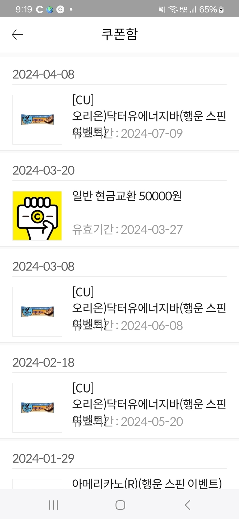 행운스핀 또 당첨되었어요
