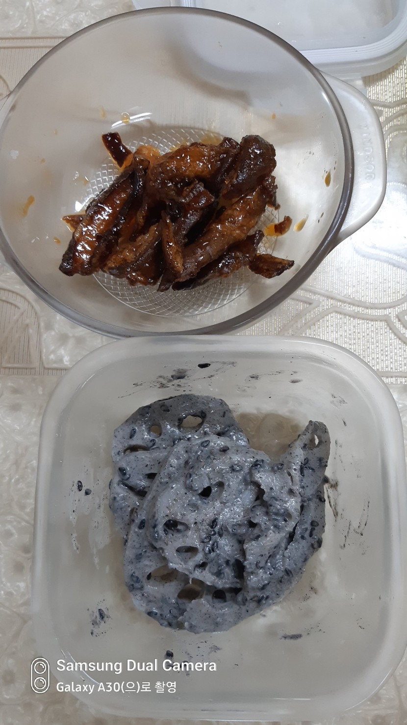 가지강정,연근 반찬