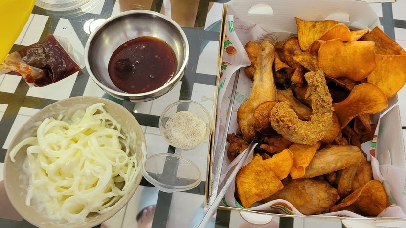 치킨에 양파샐러드
