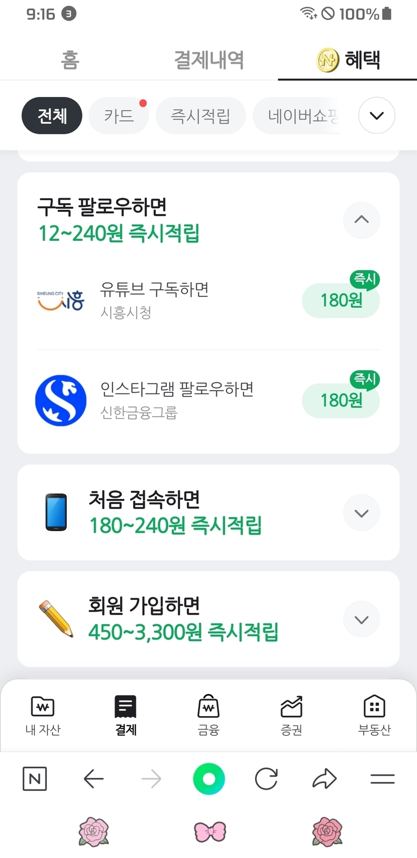 구독 팔로우에 180원 2개
