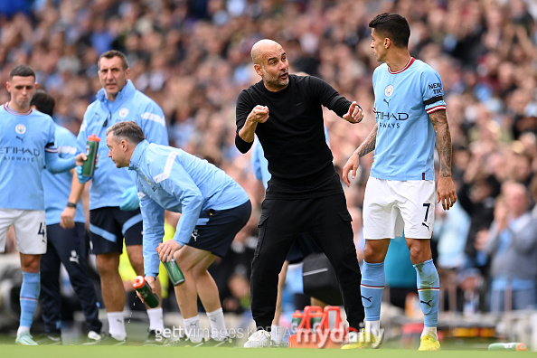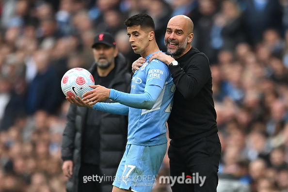 [펩 과르디올라 맨체스터 시티 감독과 주앙 칸셀루. 사진 = 게티이미지코리아]