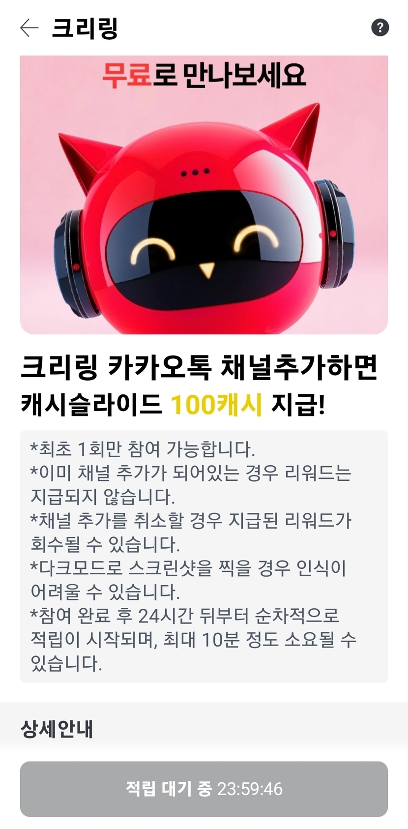 크리링카톡채널 적립
