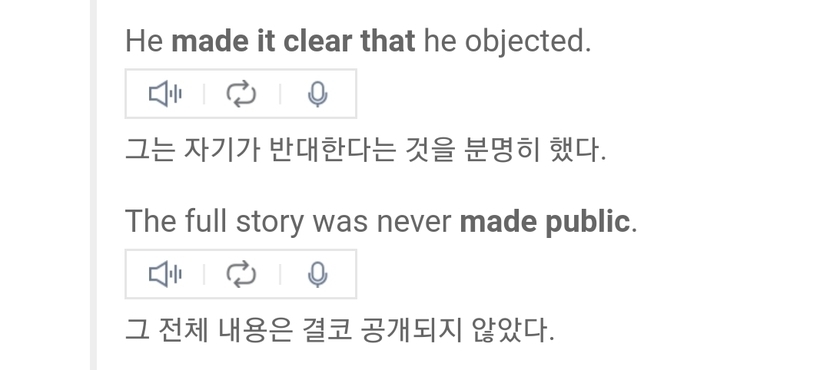 make it clear, make public ๋ฑ ๊ด์ฉ์ ์ธ ์ด๊ตฌ๋ก ์ฐ์ธ ๊ณณ์์๋ Make์ ๊ธฐ๋ณธ์ ์ธ ์๋ฏธ๋ฅผ ๋ฐ๋ผ๊ฐ๋ฉฐ ํด์ํด๋ณด์ธ์๐โโ๏ธ