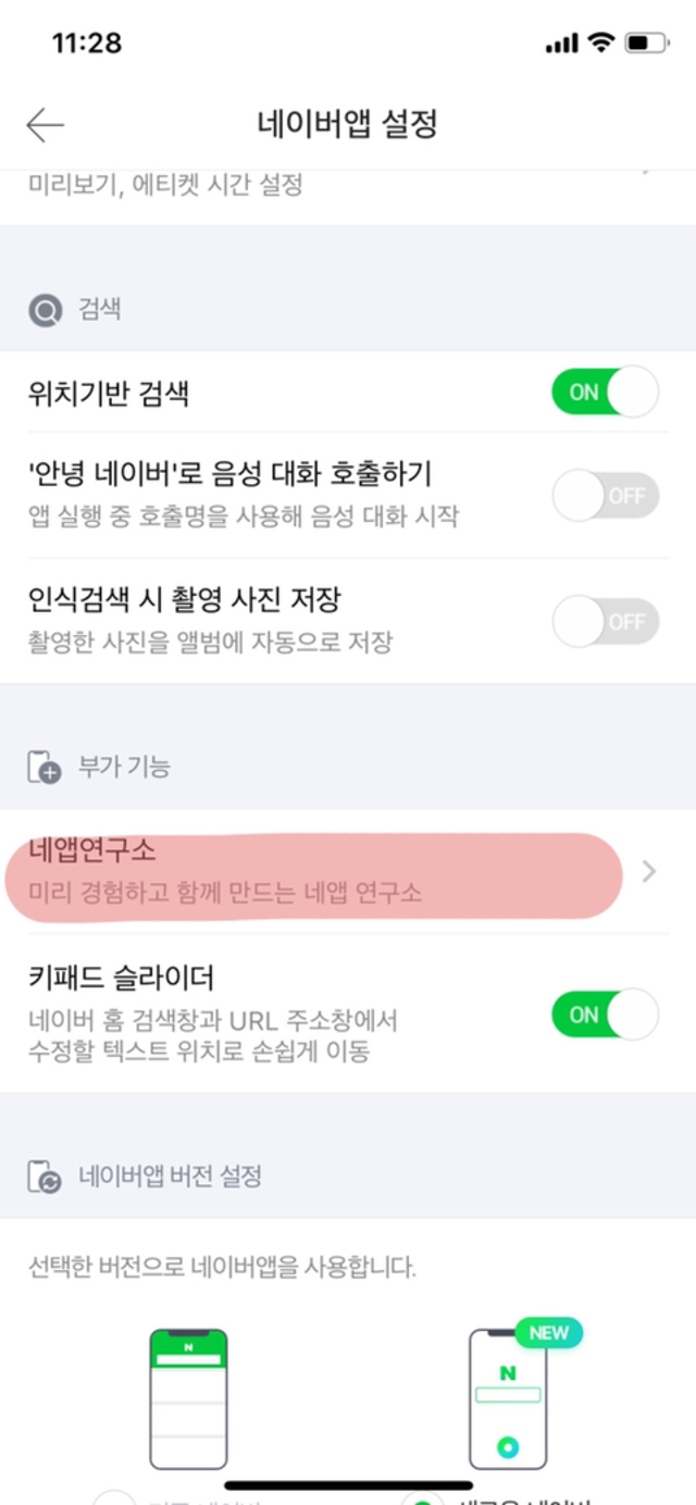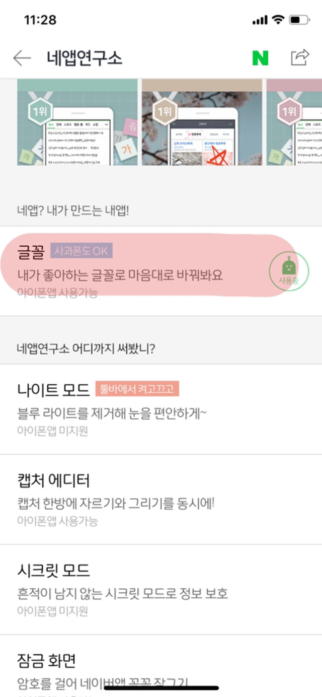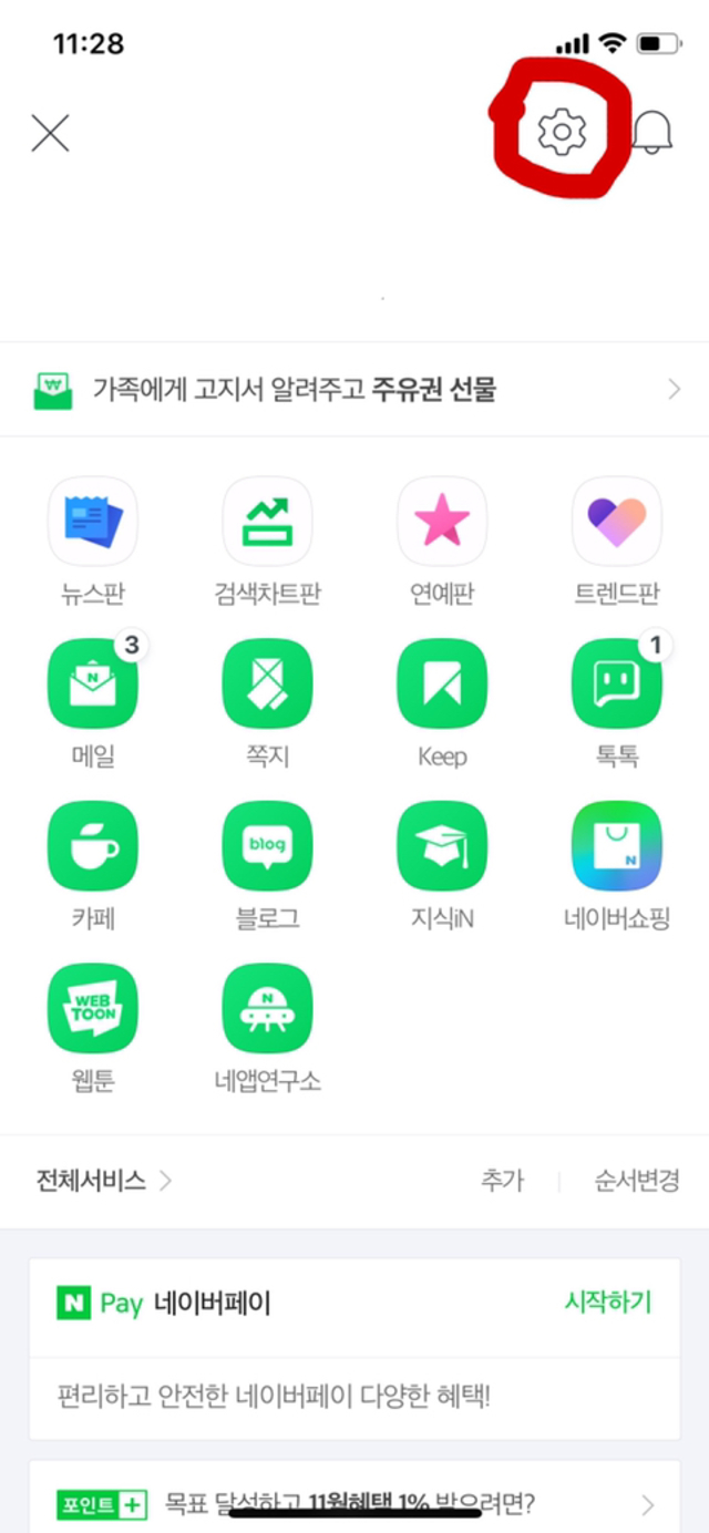 19.11.11 1,959 읽음 아이폰 네이버 폰트 바꾸는법! 이번주로또1등은나 구독하기 0 5 콘텐츠의 수익 0 신기한거 찾아서 가져와봄아이폰에서 네이버 폰트 바꾸는 방법도 있대네이버 글씨체를 바꿀 수 있는 방법을 찾아서 가져왔어!네이버 앱을 이용하고 있으면 설정할 수 있음!!왼쪽 위 세줄을 눌러!그럼 이 화면이 나오는데 오른쪽 위에 설정눌러!아래로 스크롤 하다보면 네앱연구소라는게 나오는데 카카오톡으로 말하면 실험실같은 기능이야!이걸 누르면글꼴 설정이 나올거야!그럼 글꼴 on 하고 글씨체 설정하면 돼!ㅋㅋㅋㅋㅋㅋㅋㅋㅋㅋ초간단함 별건아니지만 기분낼때 괜찮은듯~~~~~~~~~ 5 0 / 300 입력
