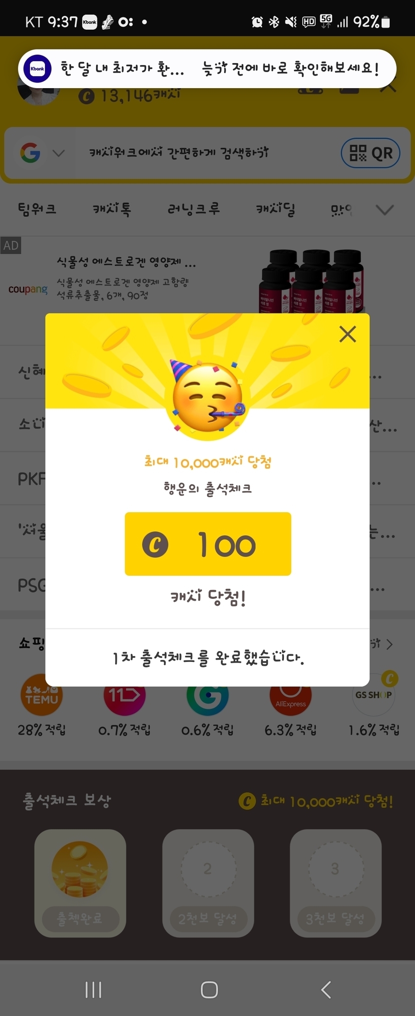 오랫만에 100캐시^^