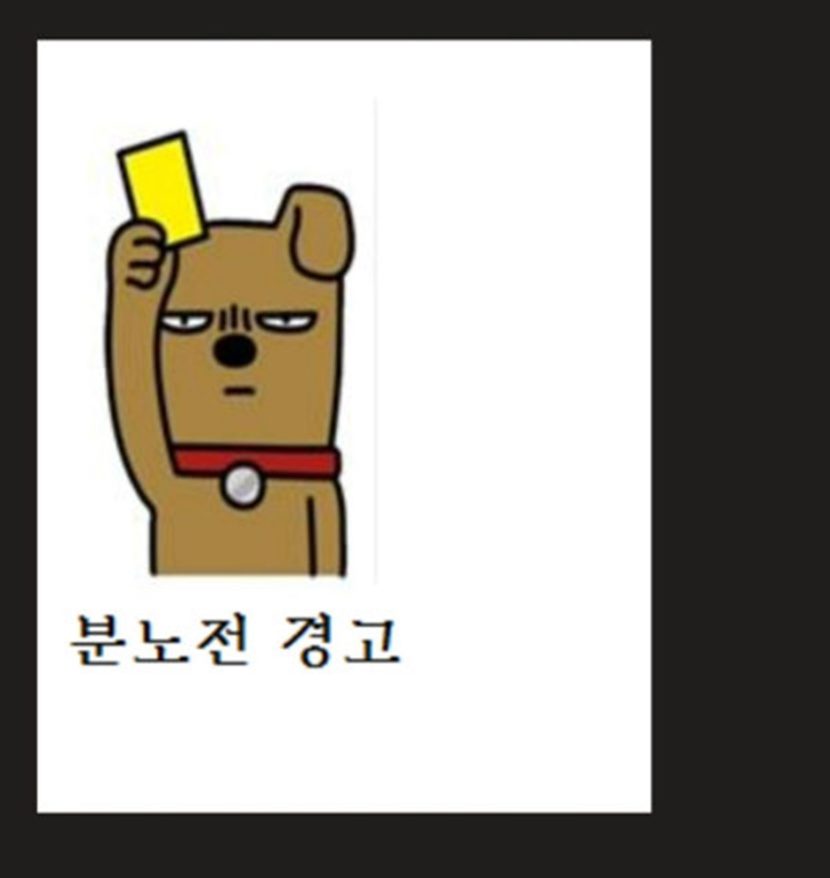 공개된 사진에는 화가 난 표정의 강아지 캐릭터가 옐로우 카드를 들고 있다. 사진에는 ‘분노전 경고’라는 문구도 적혀 있다.