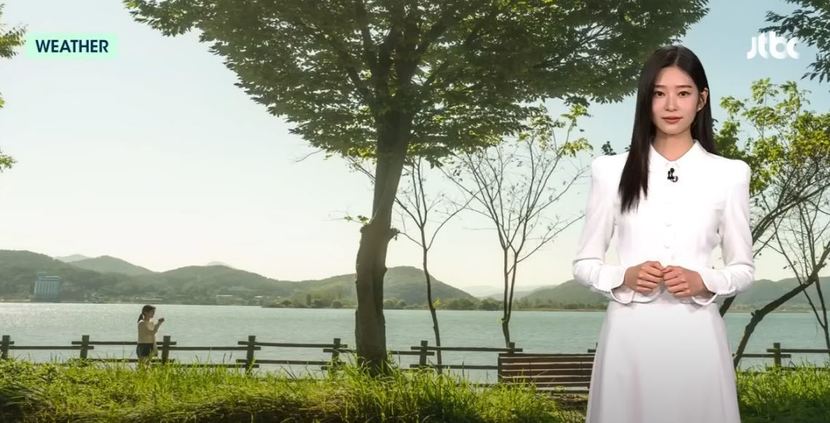김민주는 "깊어가는 가을을 맞아 오늘은 제가 주말 날씨를 전해드리겠다"고 말하며 기상 캐스터 역할을 맡았다.
