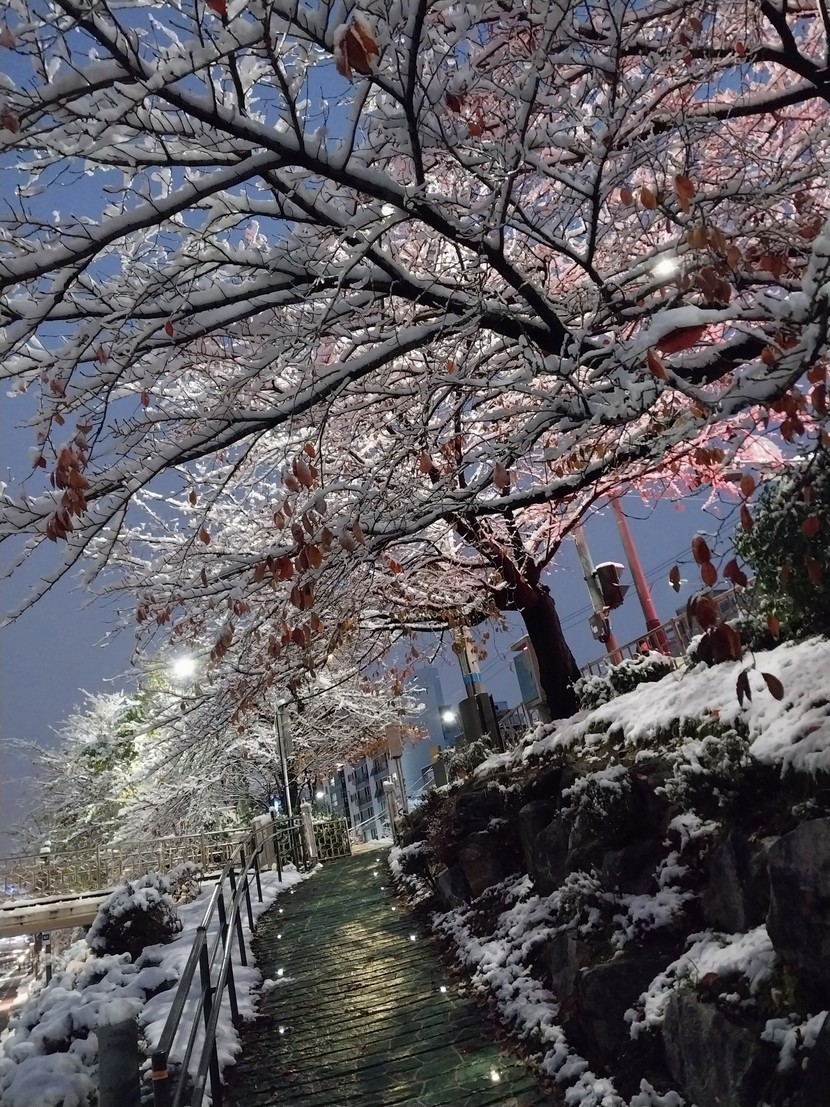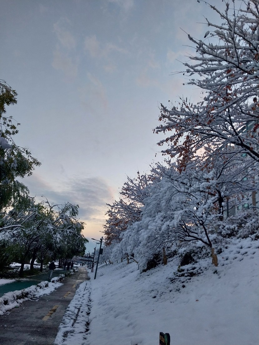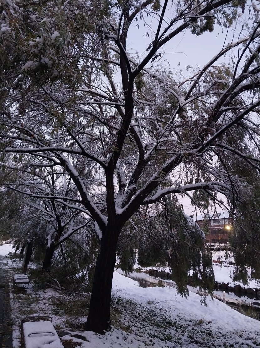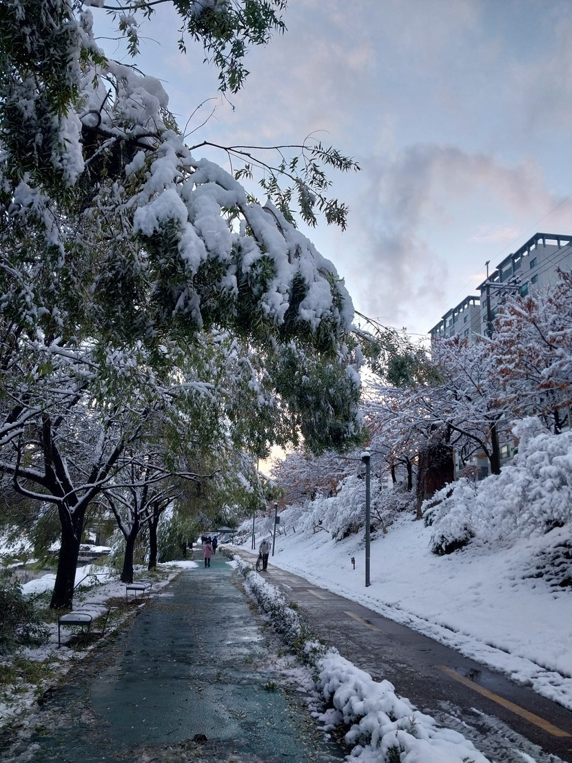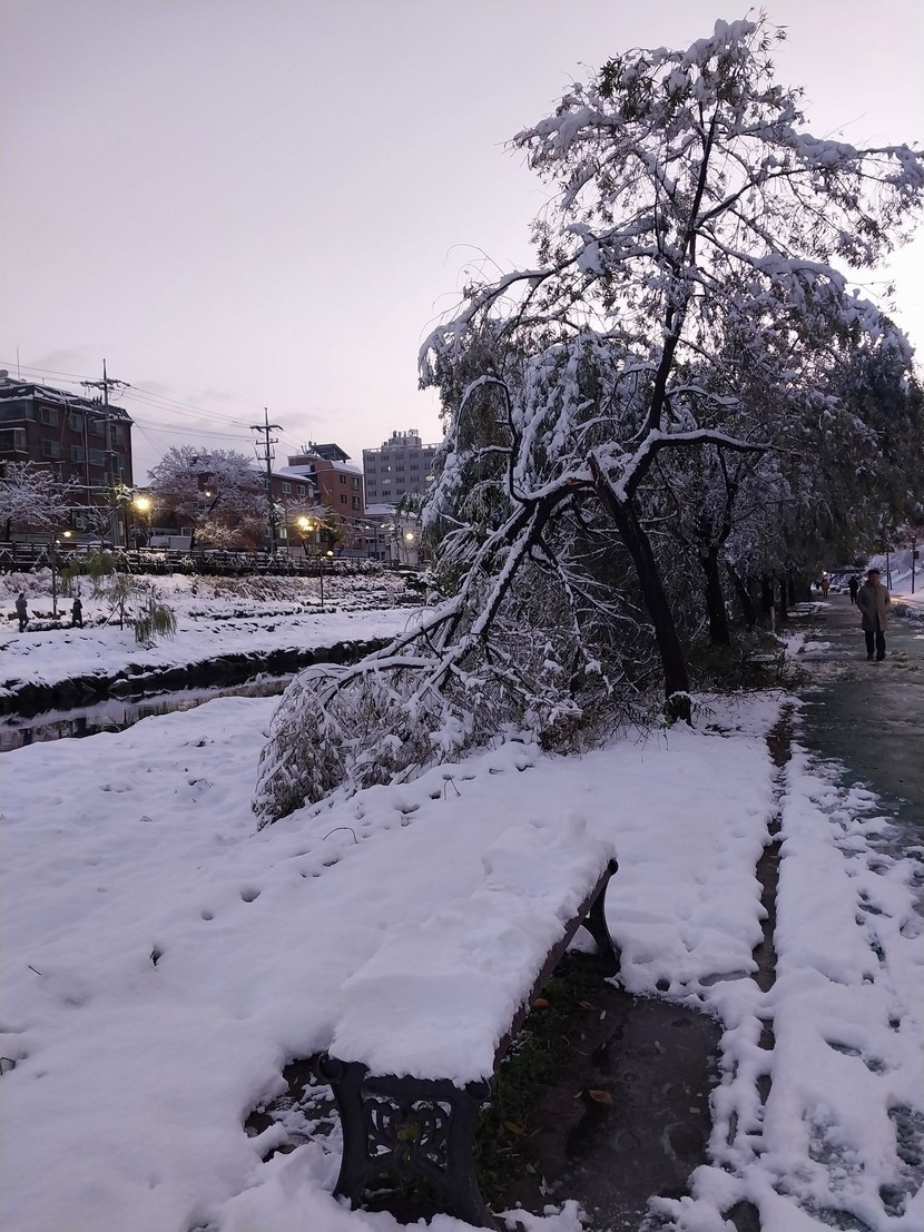 눈이 많이 와서 나뭇가지가 부러지기도 했네요