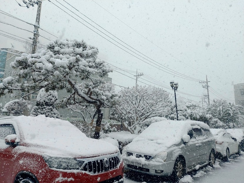 눈이 무섭게 왔어요