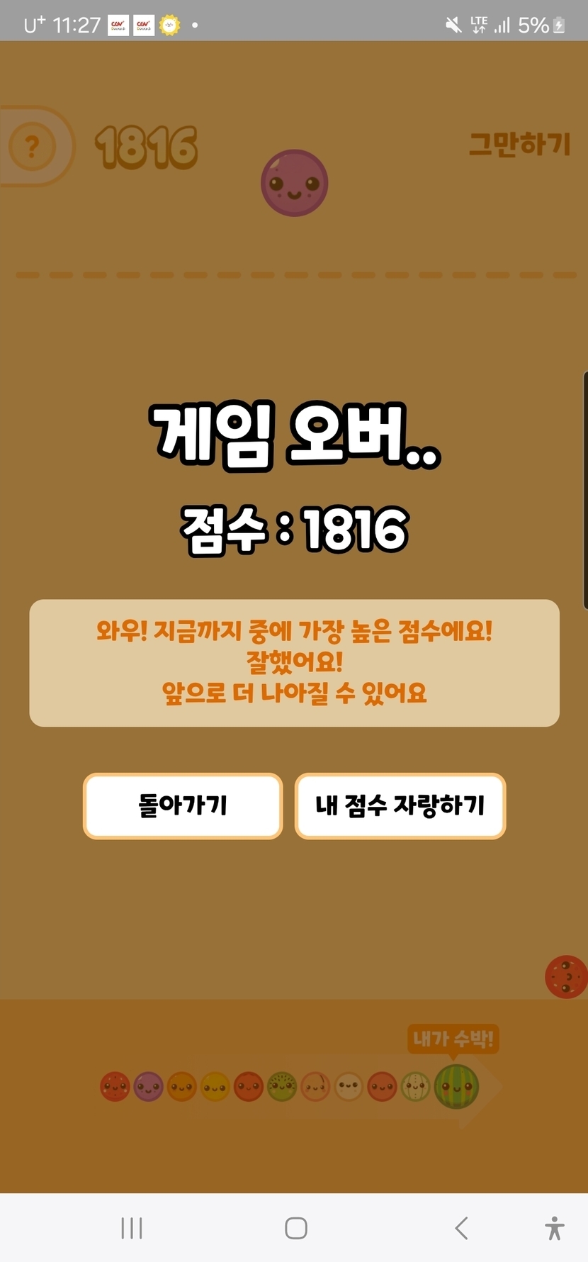 간만에 수박게임 신기록 갱신!!!