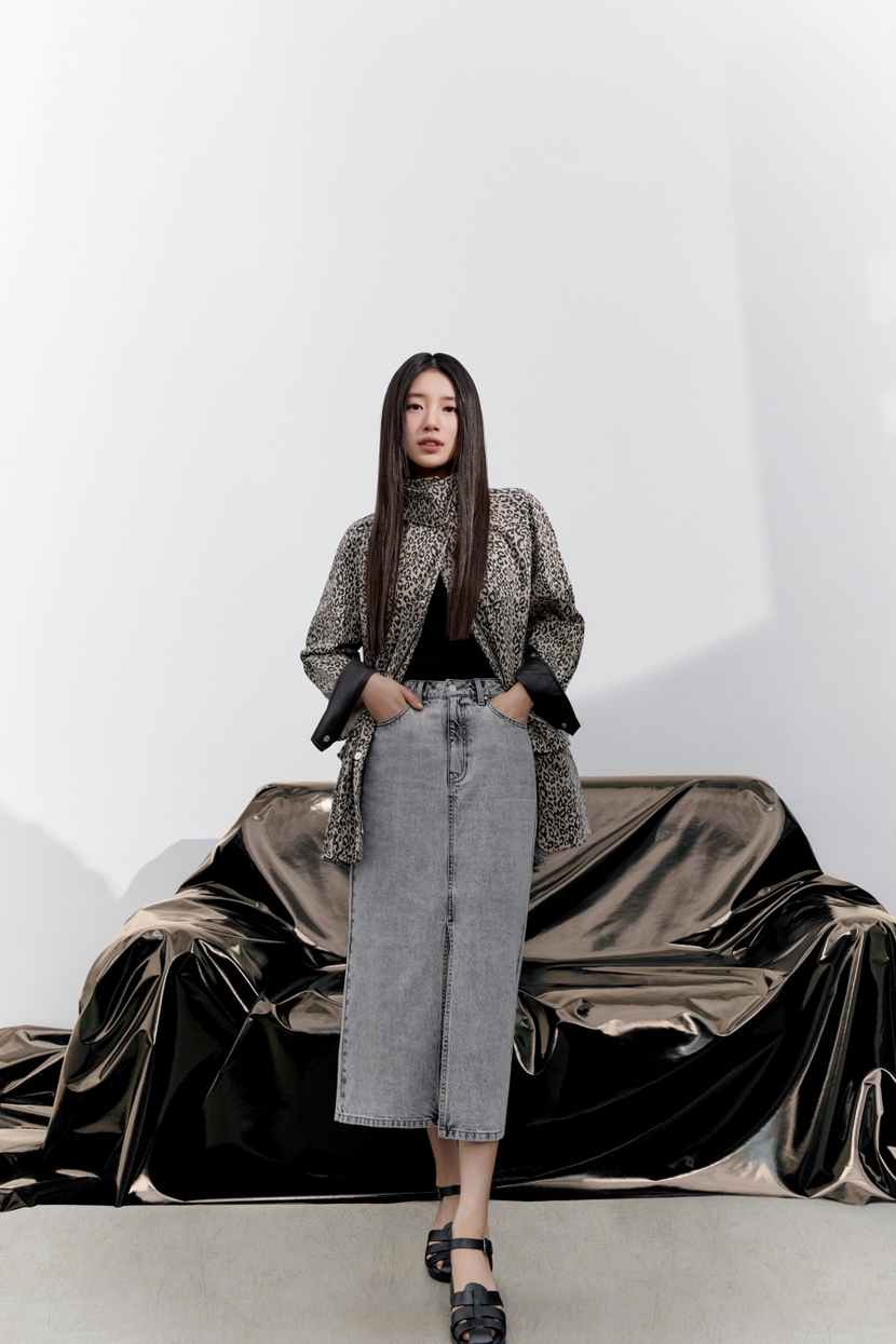 화보 속 수지는 리본 포인트가 더해진 구조적인 실루엣이 돋보이는 블라우스에 실버 컬러의 뷔스티에 탑을 매치해 세련된 드레스업 레이어링을 연출하는 한편, 진주 포인트가 더해진 데님 팬츠를 활용한 데님 온 데님 스타일링, 최근 트렌드인 레오파드 패턴의 자켓을 활용한 데님 롱 스커트 스타일링을 선보이는 등 게스만의 섬세한 터치감이 더해진 제품들을 완벽하게 소화해 눈길을 사로잡고 있다.