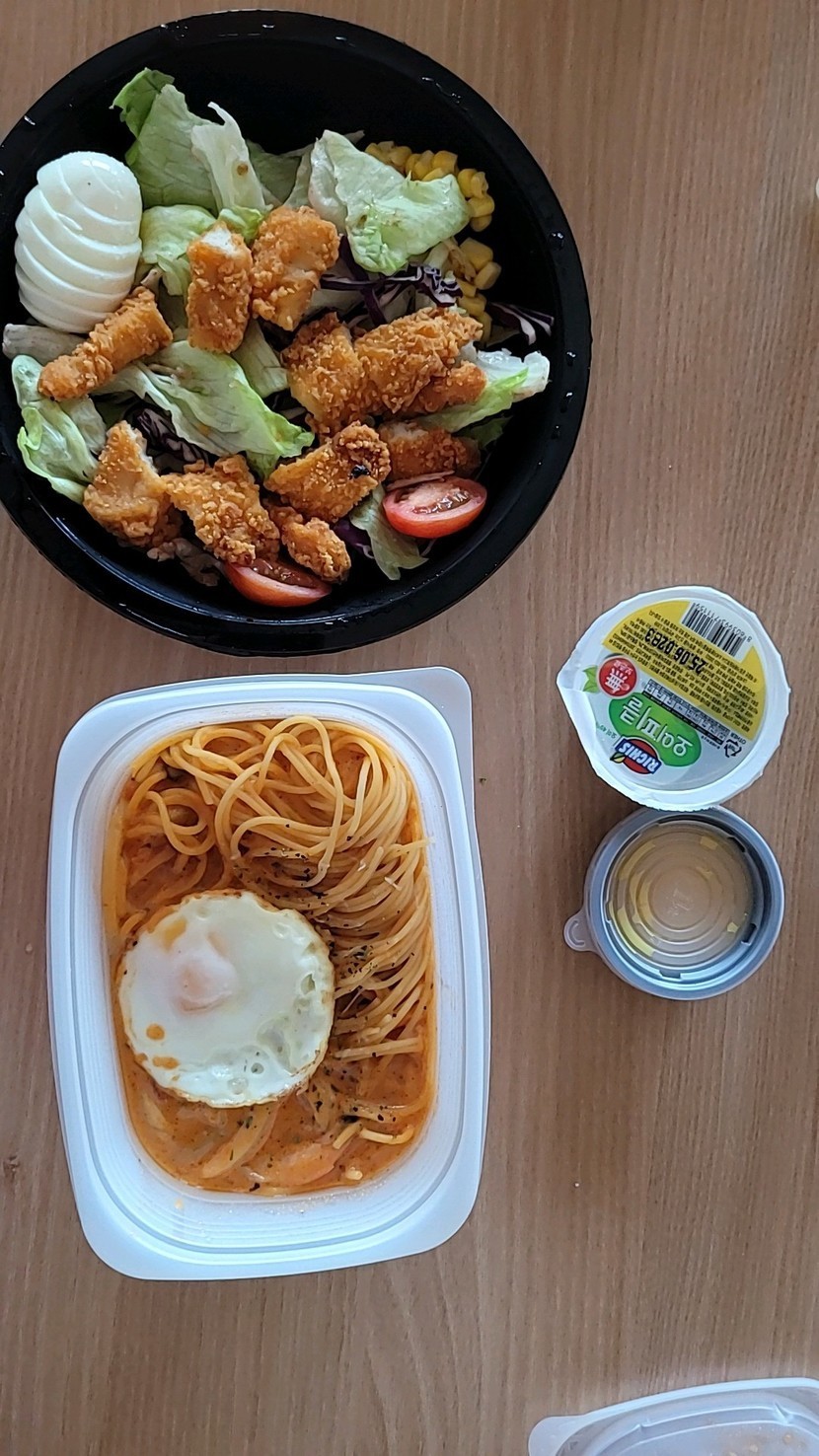 로제 파스타와 치킨 샐러드입니다~