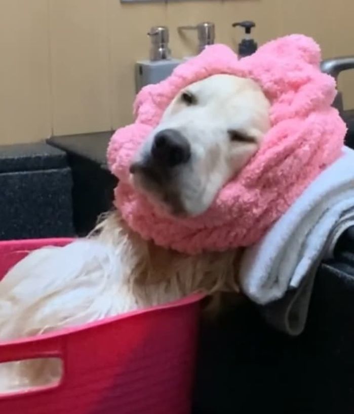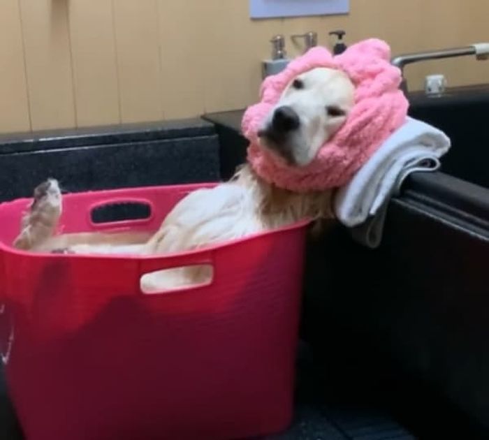 사연은 이렇습니다. 골든 리트리버 강아지 아룬(Araun)을 키우고 있는 집사는 SNS를 통해 욕조 안에 들어가 목욕을 즐기는 강아지의 일상을 공개한 것.