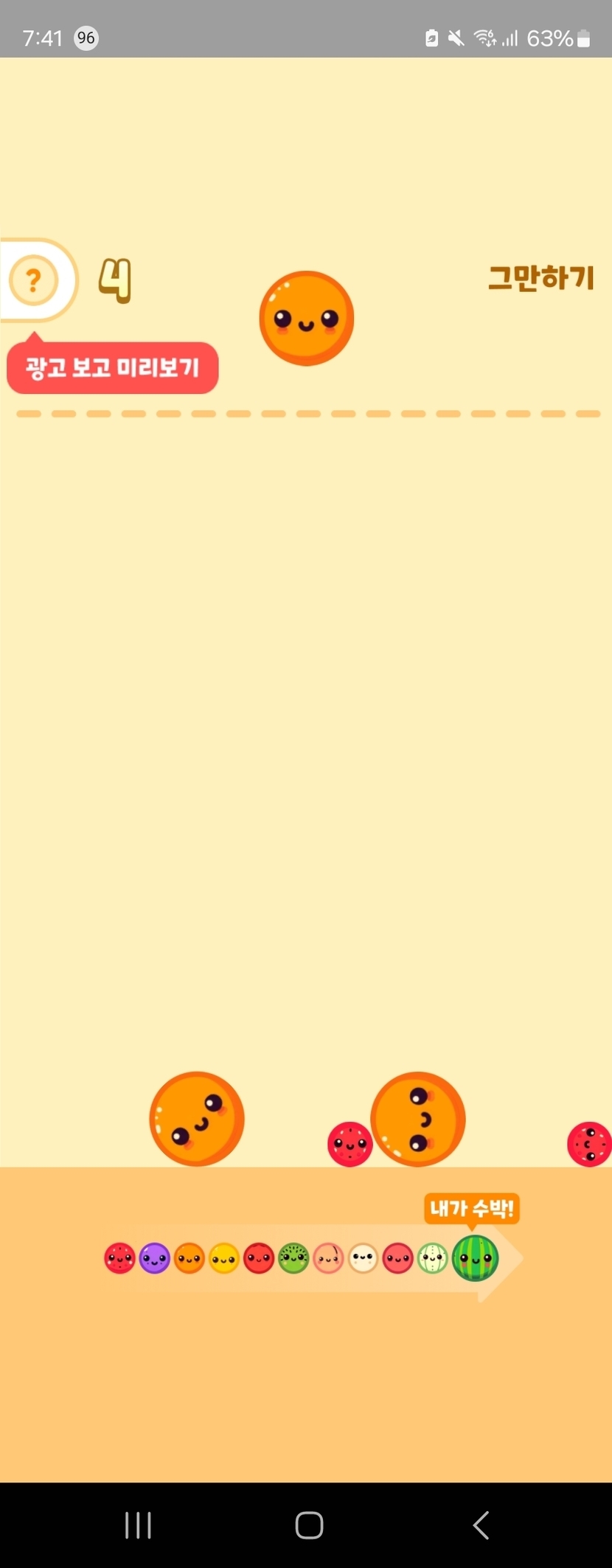 수박게임 4점 득하고 스톱