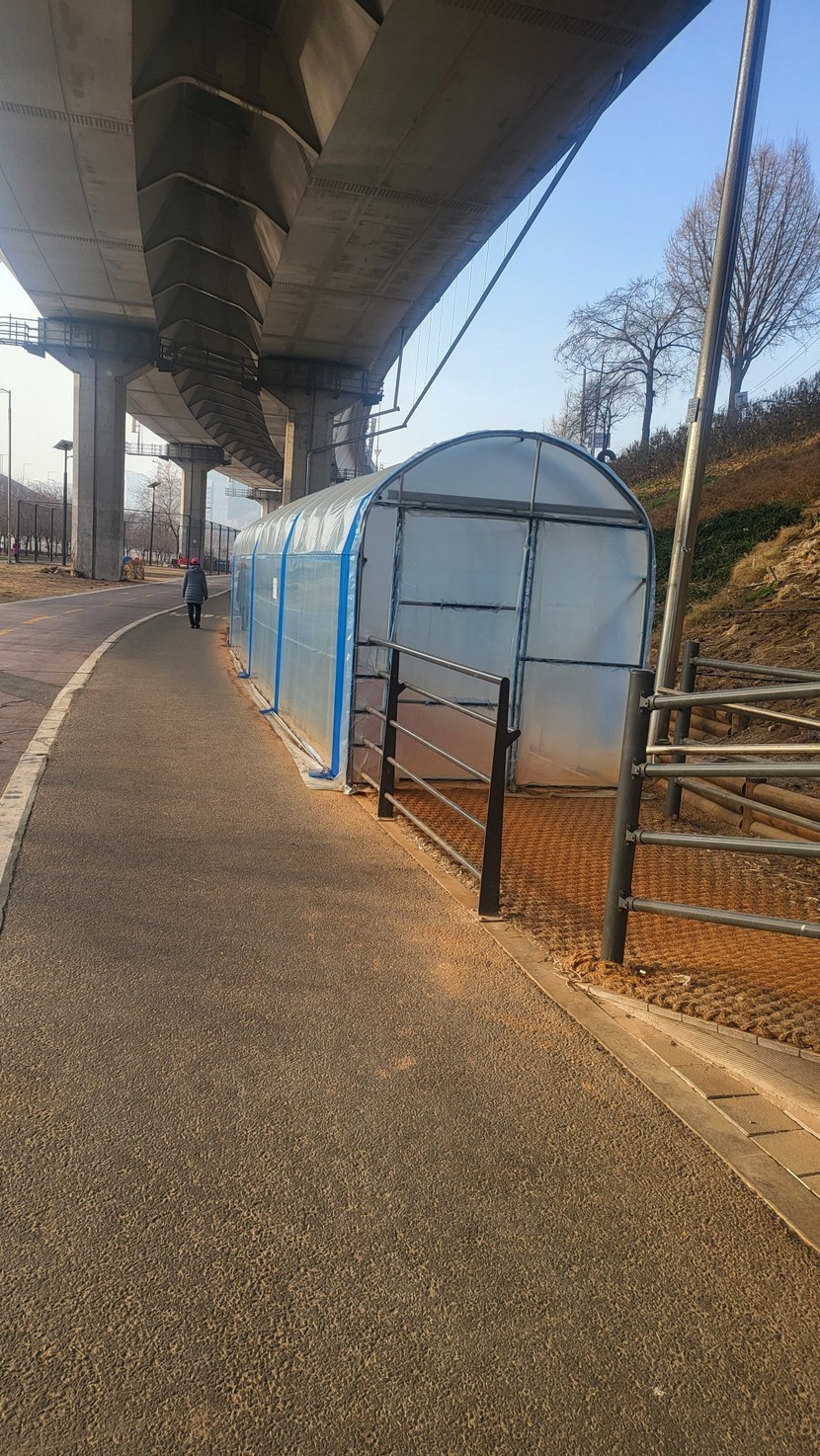 한겨울에 황토길 얼지말라고 비닐하우스 왜 하는건지 이제는 비닐하우스 걷겠네요
