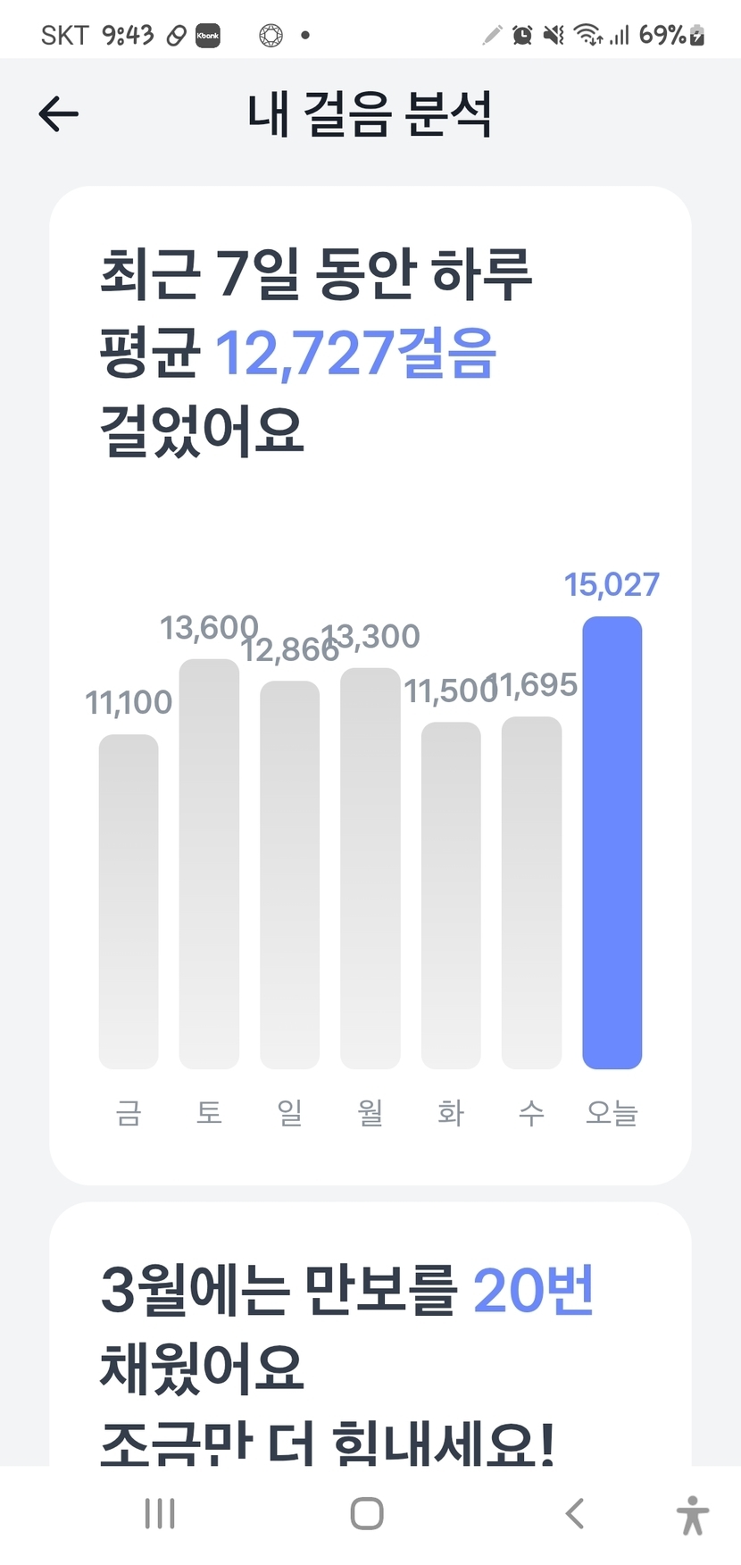 오늘도만보성공ㅋ요즘미세먼지와꽃가루때문에마스크필수지만ㅋ그래도걷는다^^*