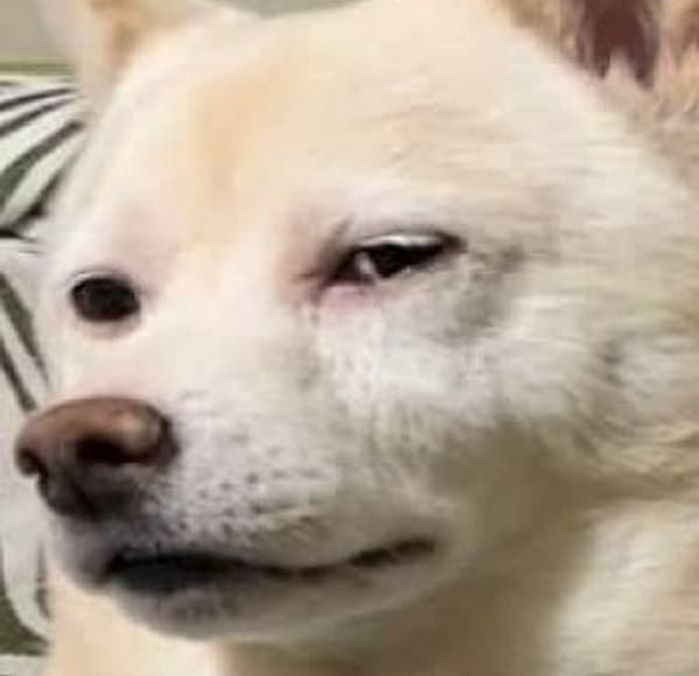 무슨 영문인지 눈을 가늘게 뜨고 마치 경멸이라도 하는 듯한 눈빛으로 집사를 뚫어져라 빤히 바라보고 있는 강아지가 있습니다.