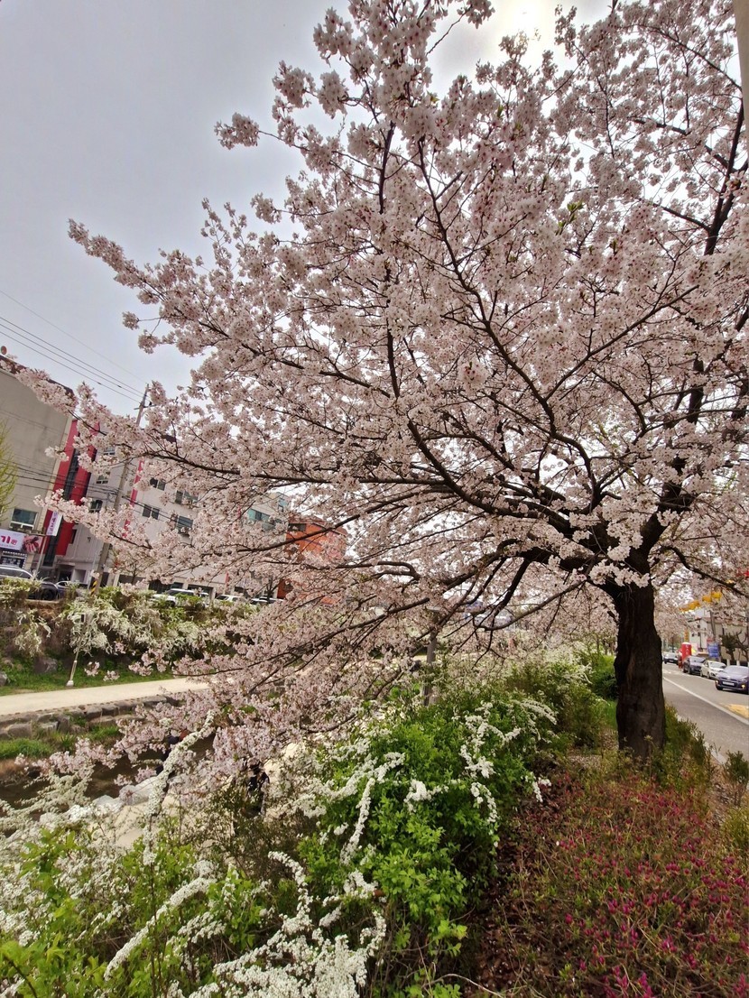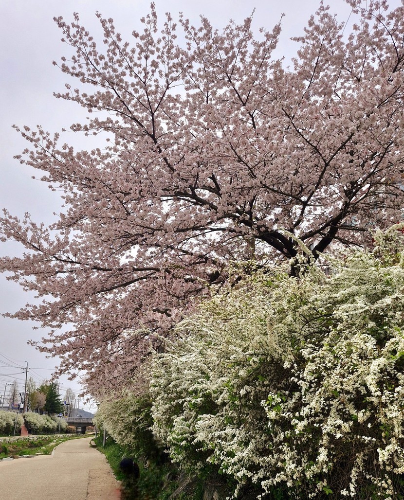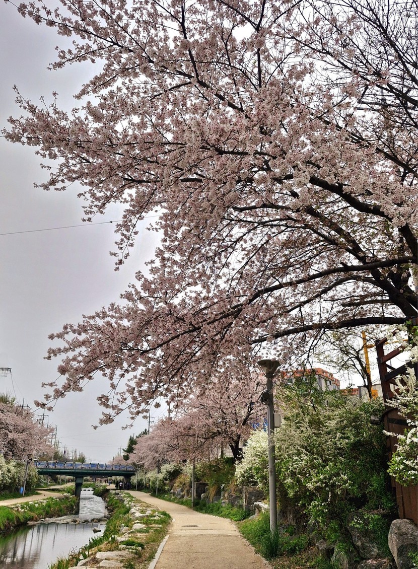 하늘이 꾸물꾸물해 천변 벚꽃 산책길 걷고왔어요.