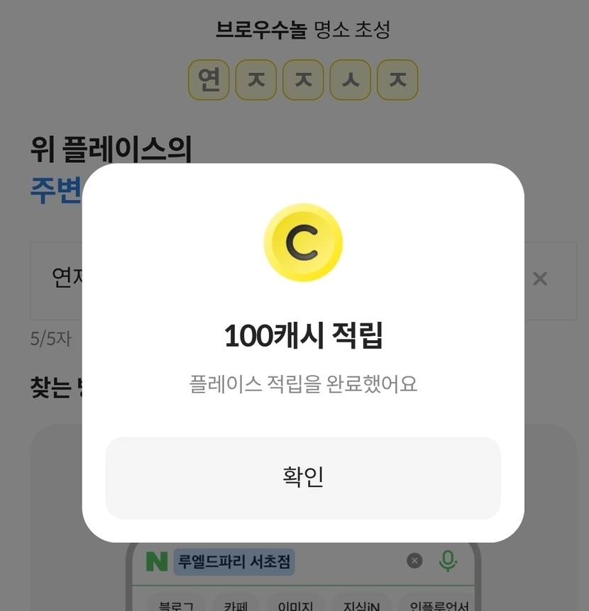 진짜 오랜만에 플레이스 적립 100캐시