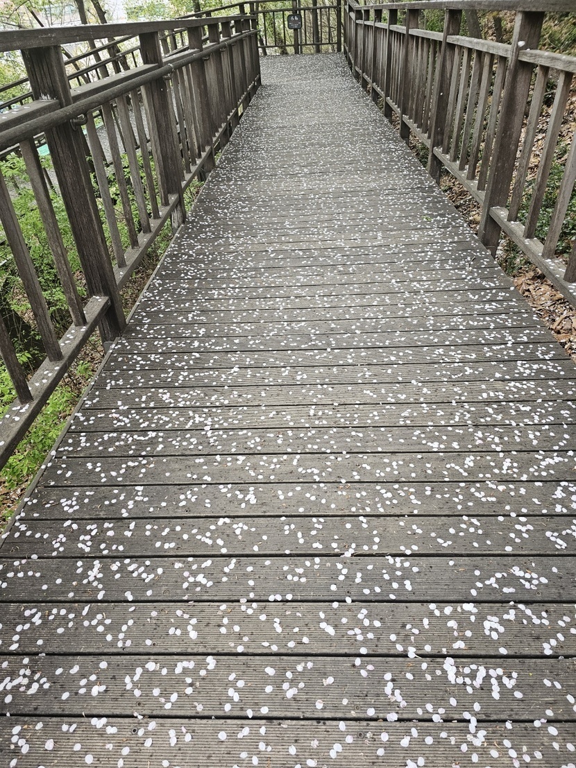 데크길위에 벚꽃잎