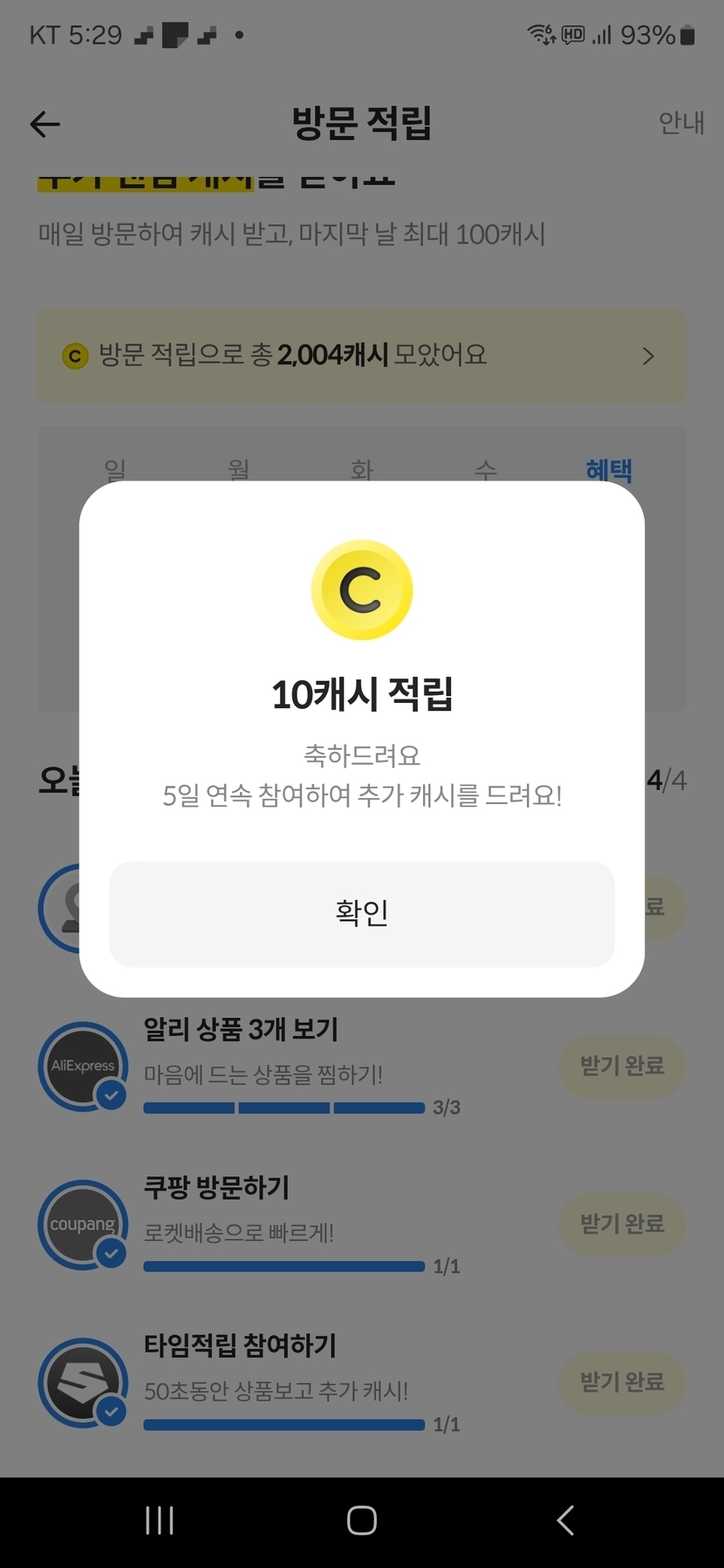 방문적립 10캐시 당첨💰💰💰