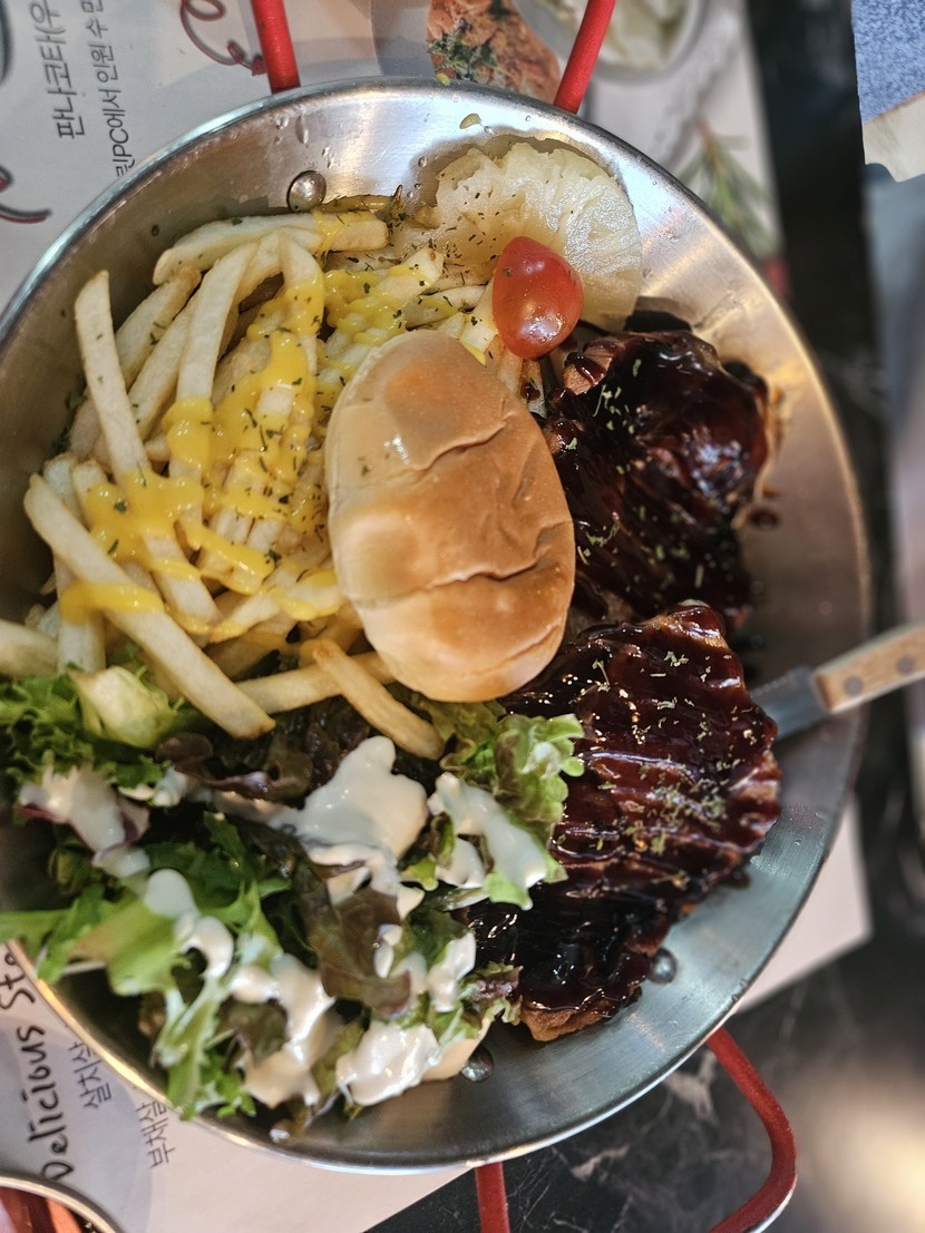 맛있는 파스타랑 스테이크 먹었어요
