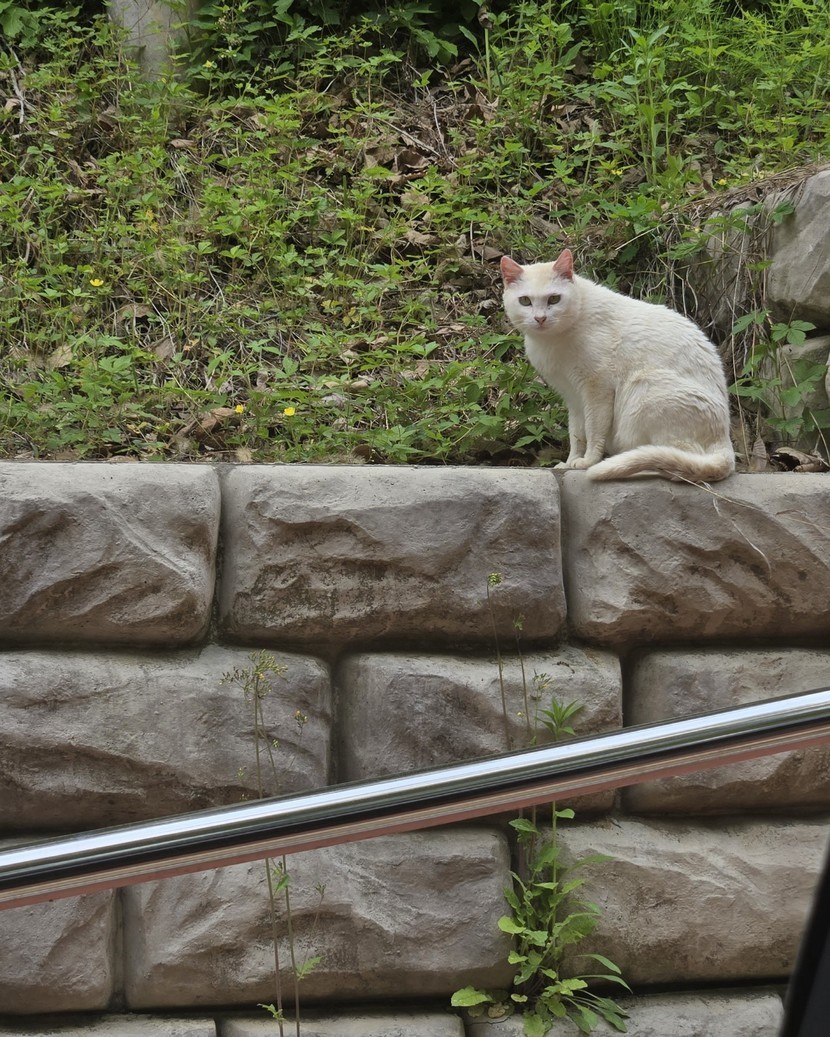 내려오는 길에 만난 하얀 냥이 🐈
