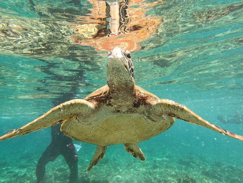 맑은 바닷가에 놀러나온바다거북이