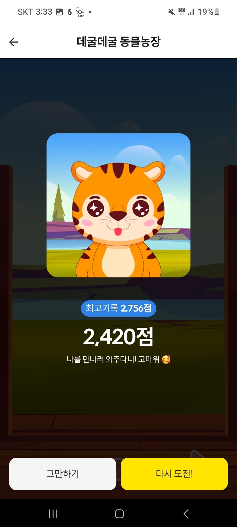 25.06.19 248 읽음 소득이 없네^^ 구구단0719 구독하기 46 47 콘텐츠의 수익 8 재미도 있지만 캐시가 걸린게임~맘처럼 되지않아 때론 스트레스도 받는데 오늘은 추가로 더 받네요^^어렵게 성공해서 호랭이를 만들었더니 해당날짜가 아니라 더받는 캐시가 없네요~5일뒤 성공캐시가 지급된다니 5일뒤 성고할수있을지^^~~ 47 0 / 300 입력