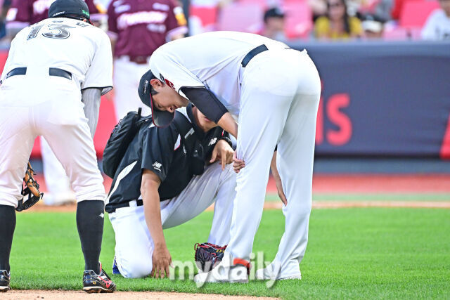 키움도 호락호락 넘어가지 않았다. 8회초 2사에서 송성문이 중전 안타로 출루했다. 임지열이 좌익수 키를 넘기는 2루타를 쳤다. 1루 주자 송성문은 이미 스타트를 끊었고, 가볍게 홈을 밟았다.