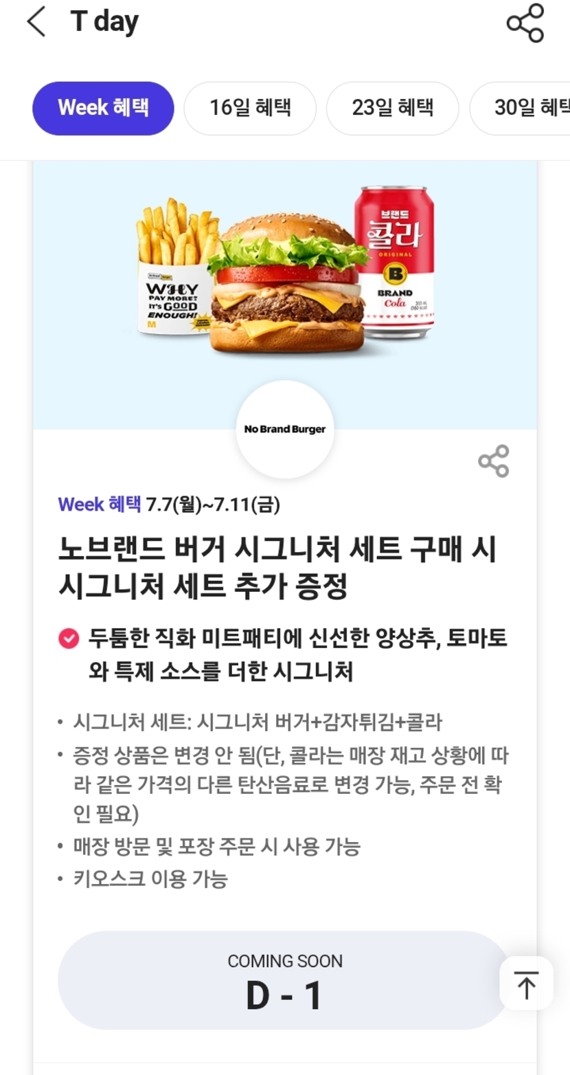 [T 멤버십] 노브랜드 버거 시그니처 세트 구매 시