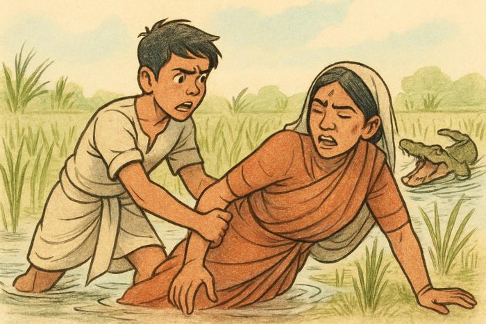 악어에 끌려간 엄마, 몸 던져 구하러 간 아들 결국