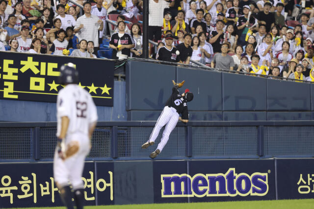 여기서 9회말 대수비로 투입된 구본혁이 나타났다. 파울 타구는 3루 불펜으로 떨어지는 것처럼 보였는데, 이때 구본혁이 펜스를 밟고 올라타, 타구를 낚아채는 엄청난 수비를 펼쳤다. 그 누구도 예상하지 못했던 순간. 기자실에서도 감탄이 쏟아질 정도의 역대급 수비가 나오면서, LG는 길고 길었던 승부 끝에 5연승을 질주하게 됐다.