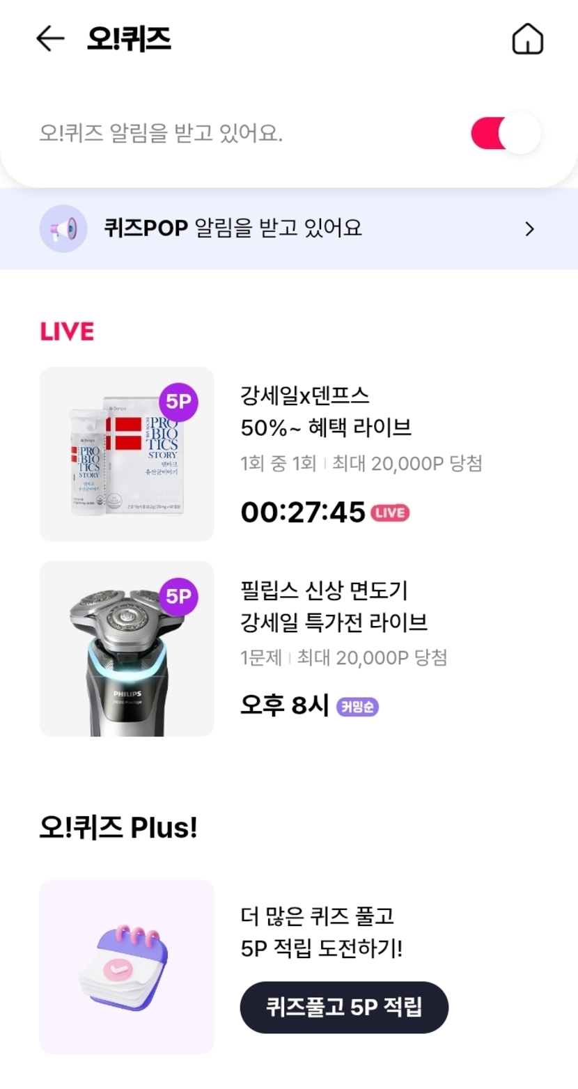 25.08.19 126 읽음 네이버페이 10원 (8시 오퀴즈 포함) 티에리압리 구독하기 5 9 콘텐츠의 수익 5 8시 오퀴즈 : 8네페 10원 (21시 종료)https://campaign2.naver.com/npay/v2/click-point/?eventId=cr_shoppinglive_250819_1417 9 0 / 300 입력