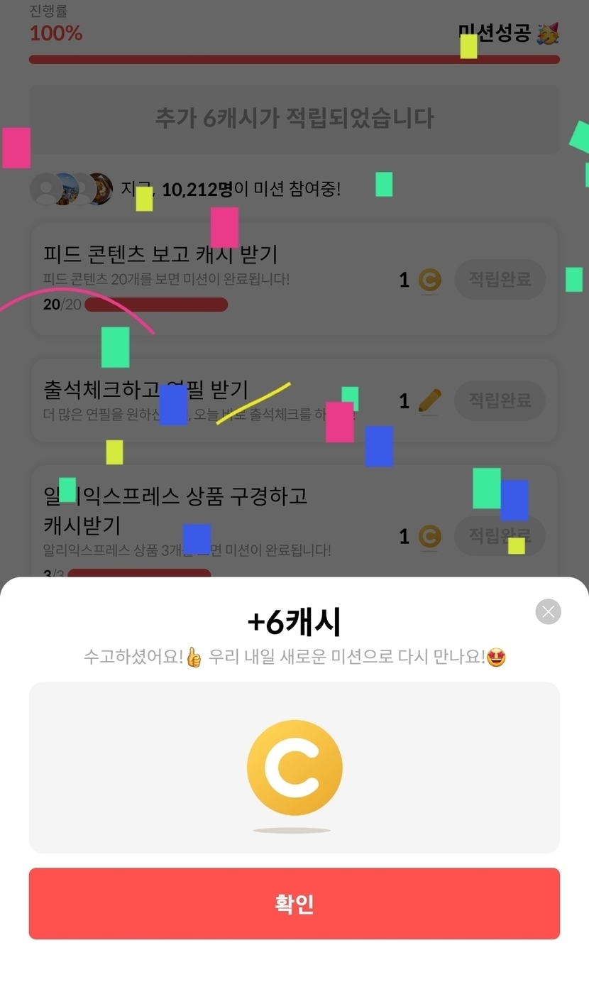 6캐시 됐어요~^^