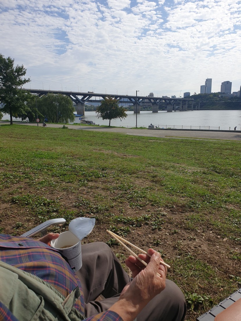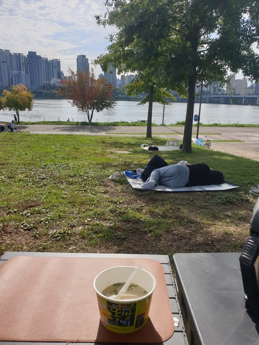 도착할때는 해가 없어 대충 자리잡았는데 잡고 라면 먹으려고 하니 해가 나오네요.